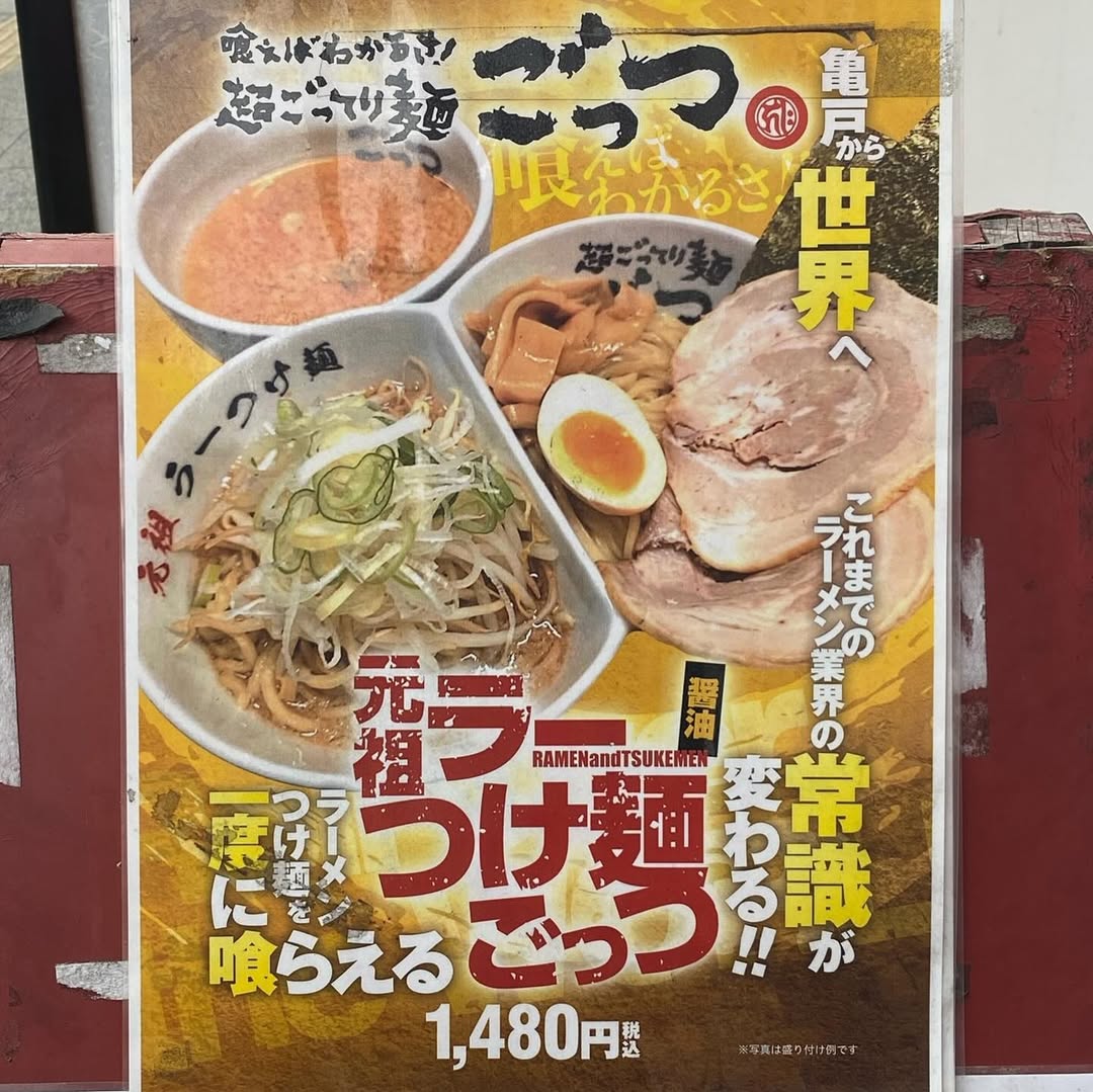 この2種の麺メニューを提供できるどんぶりはこのメニューの他、ごっ2ダブルつけ麺というこのお店の3種のつけ汁を2種選べるメニューにも使われています。当初期間限定とのことでしたが、予想通りに期間を延長していました(現時点でまだ続いているのかは未確認)。しかし、ダブルつけ麺と違いラーつけ麺の方には期間限定と書いていなかったので、もしかしたらラーつけ麺の方はレギュラーなのでしょうか。