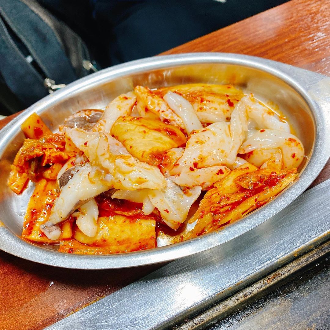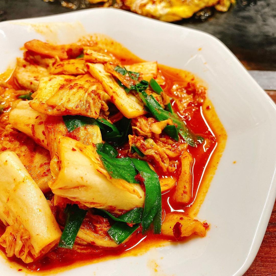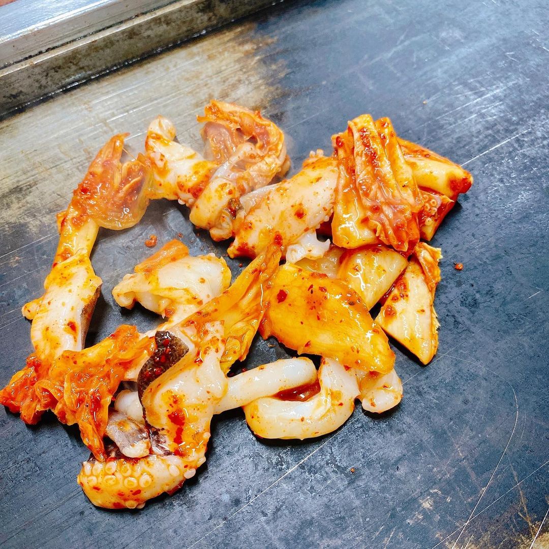 牛すじ、ネギ、キムチ、辛味ペーストを使ったもんじゃです。辛味はかなりたっぷりと入りますが、それほど激辛、というわけでもなく程よい辛味と旨み。名前にあるように、有名人のGacktが注文した組み合わせのもんじゃということのようです。