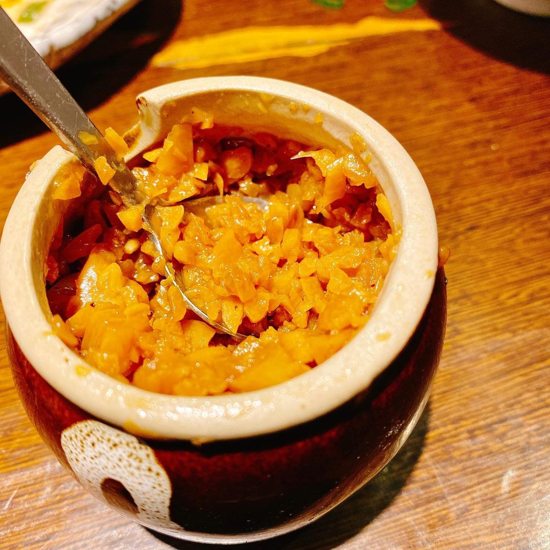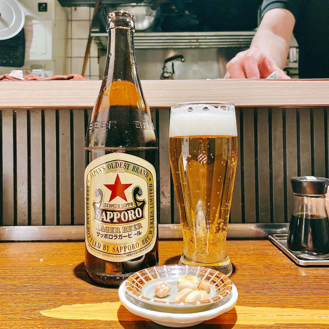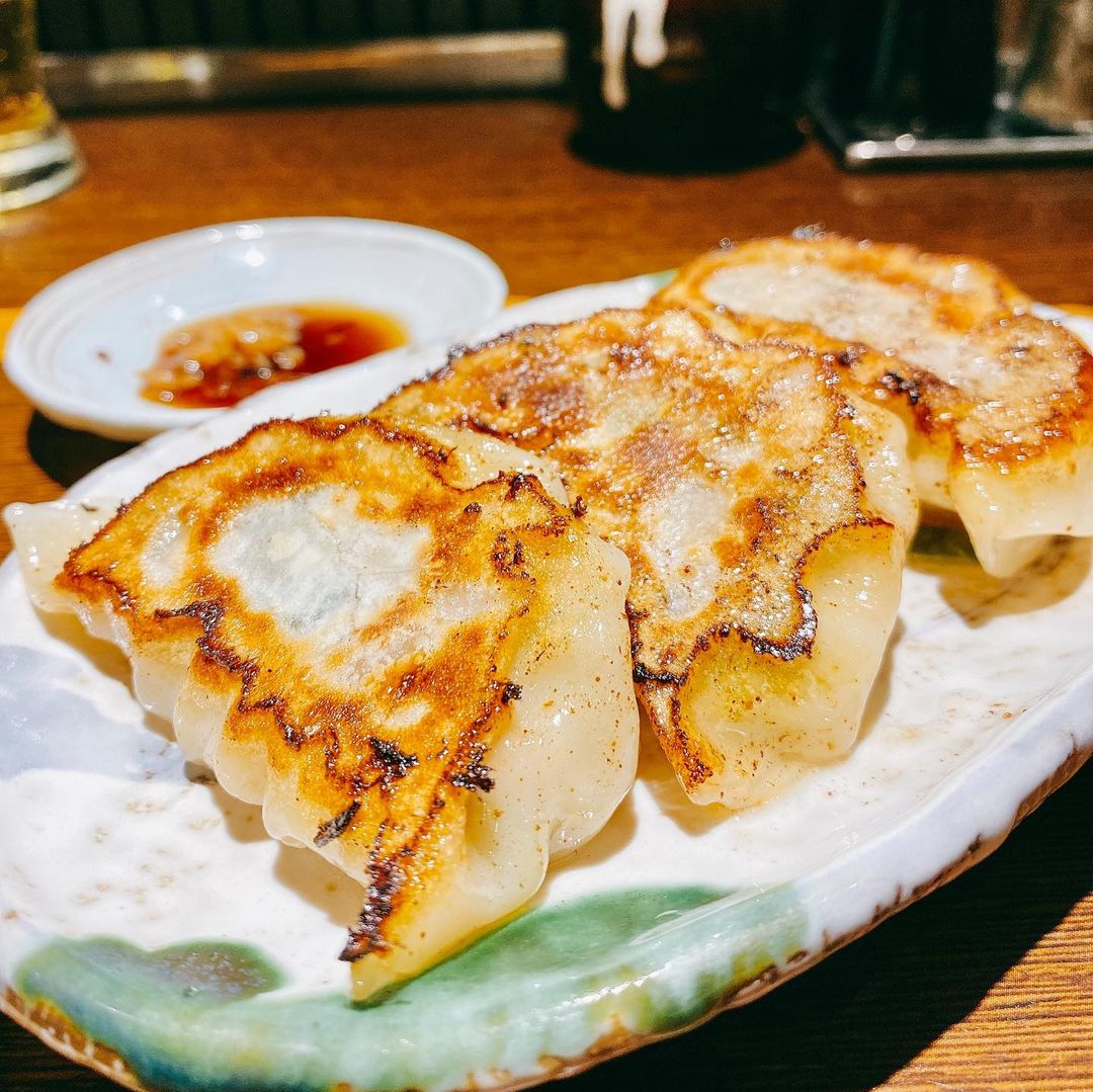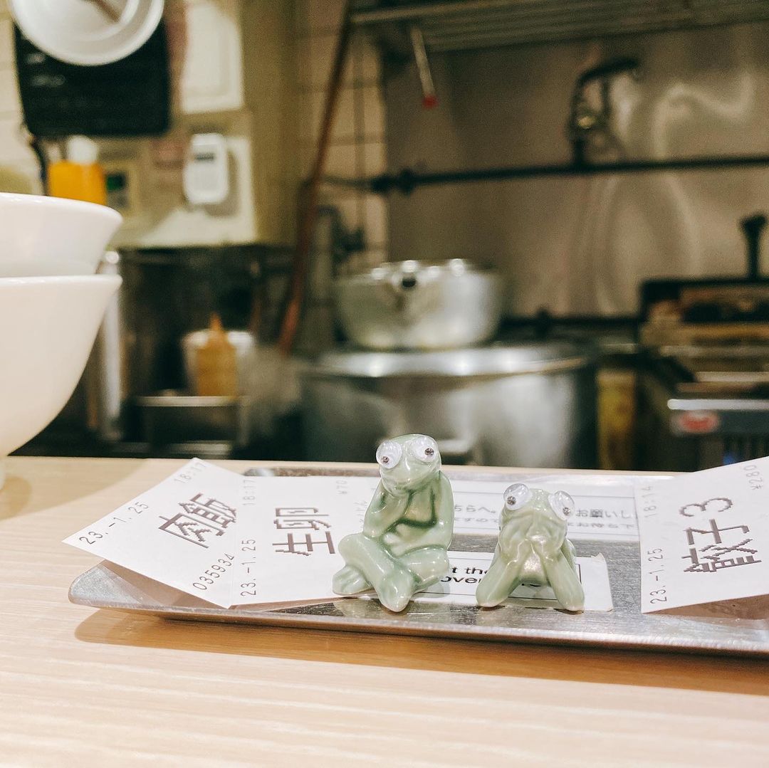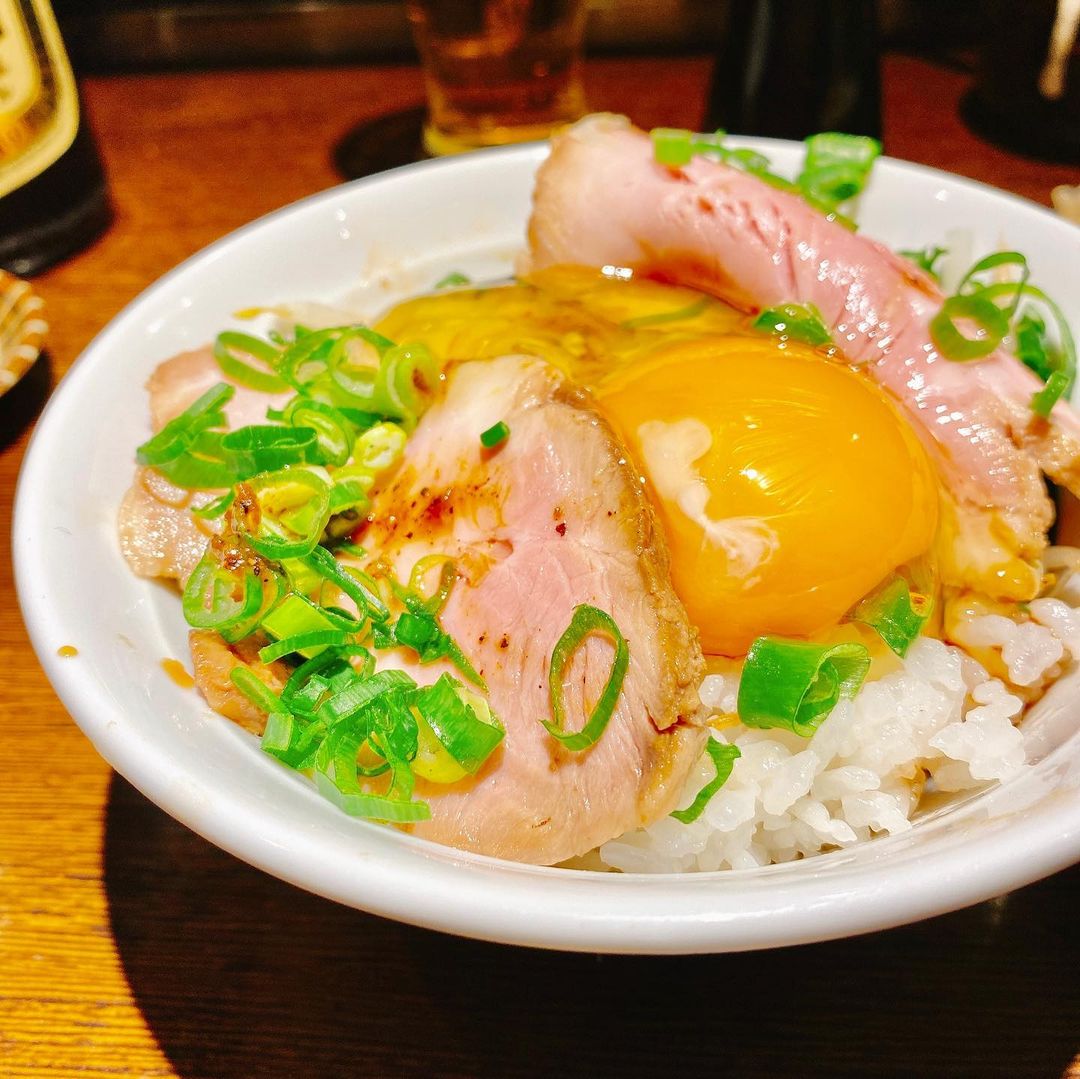 今回はラーメン以外のサイドメニューも食べたくて、餃子(3つ)とチャーシューご飯に生卵をトッピング。それらと赤星からスタートしました。ニンニクの醤油タレ漬けも、ご飯に乗せるのはもちろん、餃子のタレに合わせるのもいいですね。これだけ食べたので、博多ラーメンの替え玉はお預け。