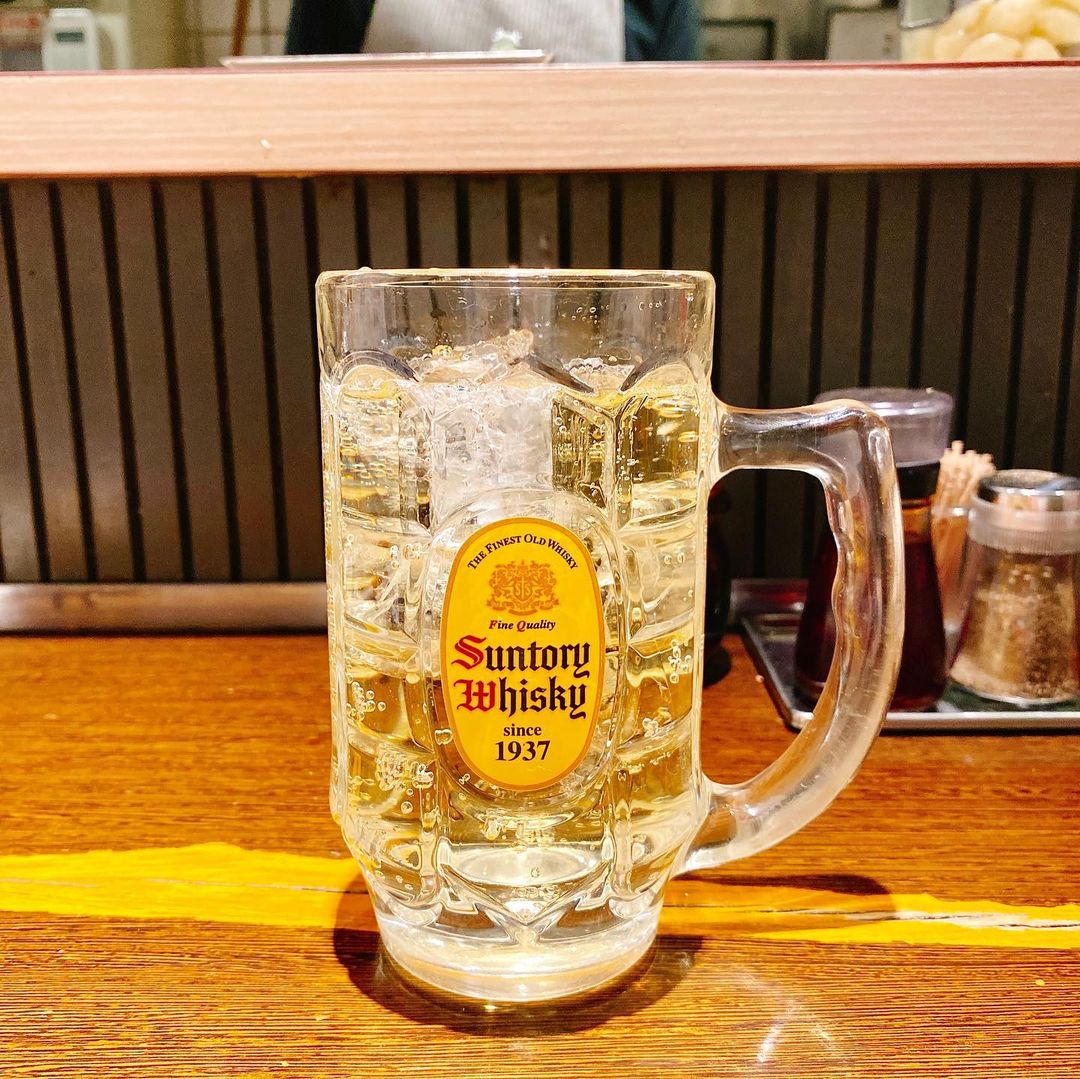 と角ハイボール。通常の具はネギとチャーシュー1枚、紅生姜は乗せ放題です。このお店のスープは-1.jpg)