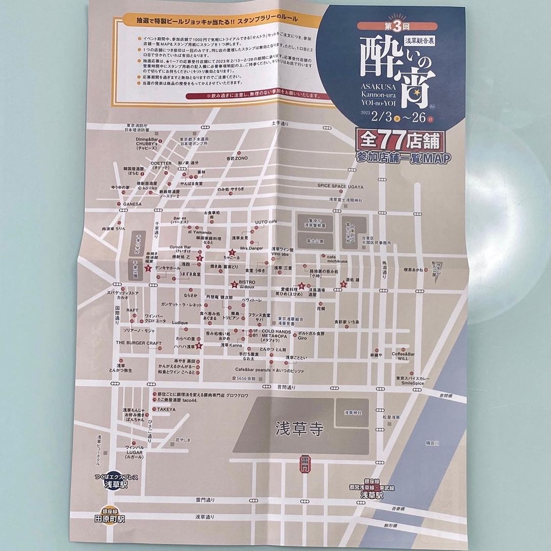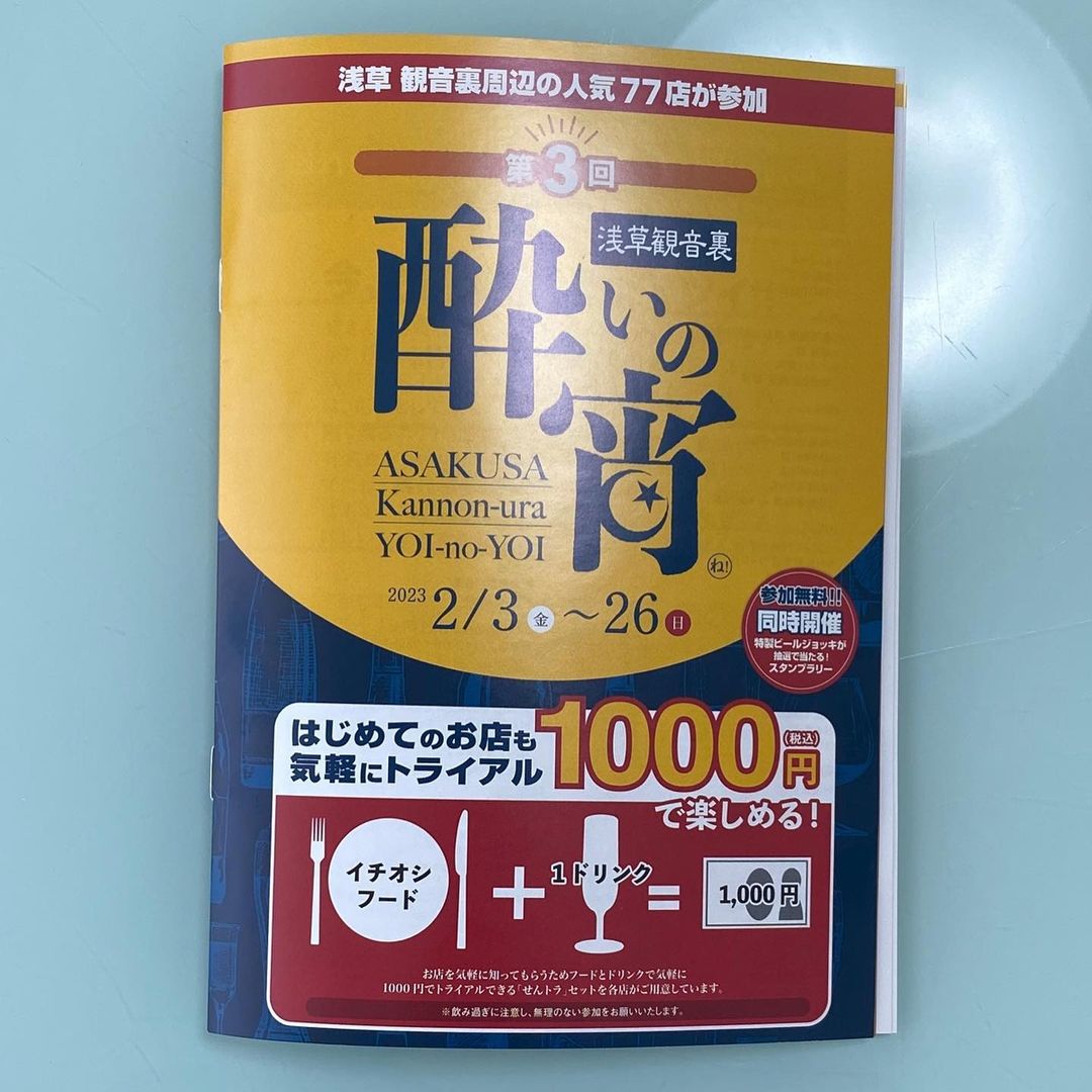 浅草観音裏エリアの数店が音頭を取り、77店もの店が参加している飲み歩きイベントです。2/3から26日までの24日間、各店舗がつまみと酒で1000円の 「せんトラ(1000円でトライ)」セットを提供。今まで行ったことのなかったお店も安価で試すことができるというものです。期間中にスタンプを貯めるとグッズが当たる特典もあります。