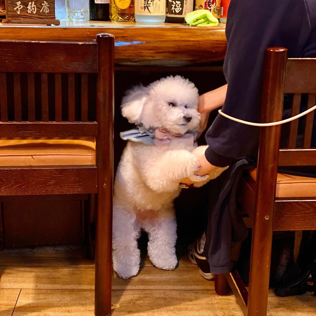 21時以降になると看板犬のもっちゃんが出勤し、お店の中の席それぞれを回る看板犬ぶりを発揮していました。カウンターと座敷席があり、背もたれ付きの座敷でゆったり過ごせました。