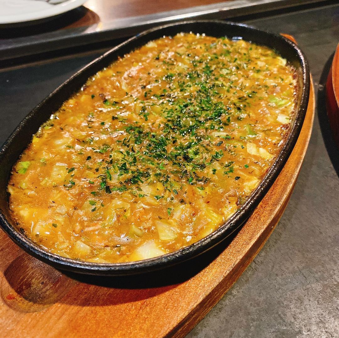 3軒目は鉄板焼居酒屋ツースリー2。こちらではジンソーダとカレーもんじゃ(ハーフ)をいただきました。もんじゃは数種類のなかから選ぶことができましたが、個人的にはカレーもんじゃ、程よいカレー感のスパイスでとっても好みの味です。