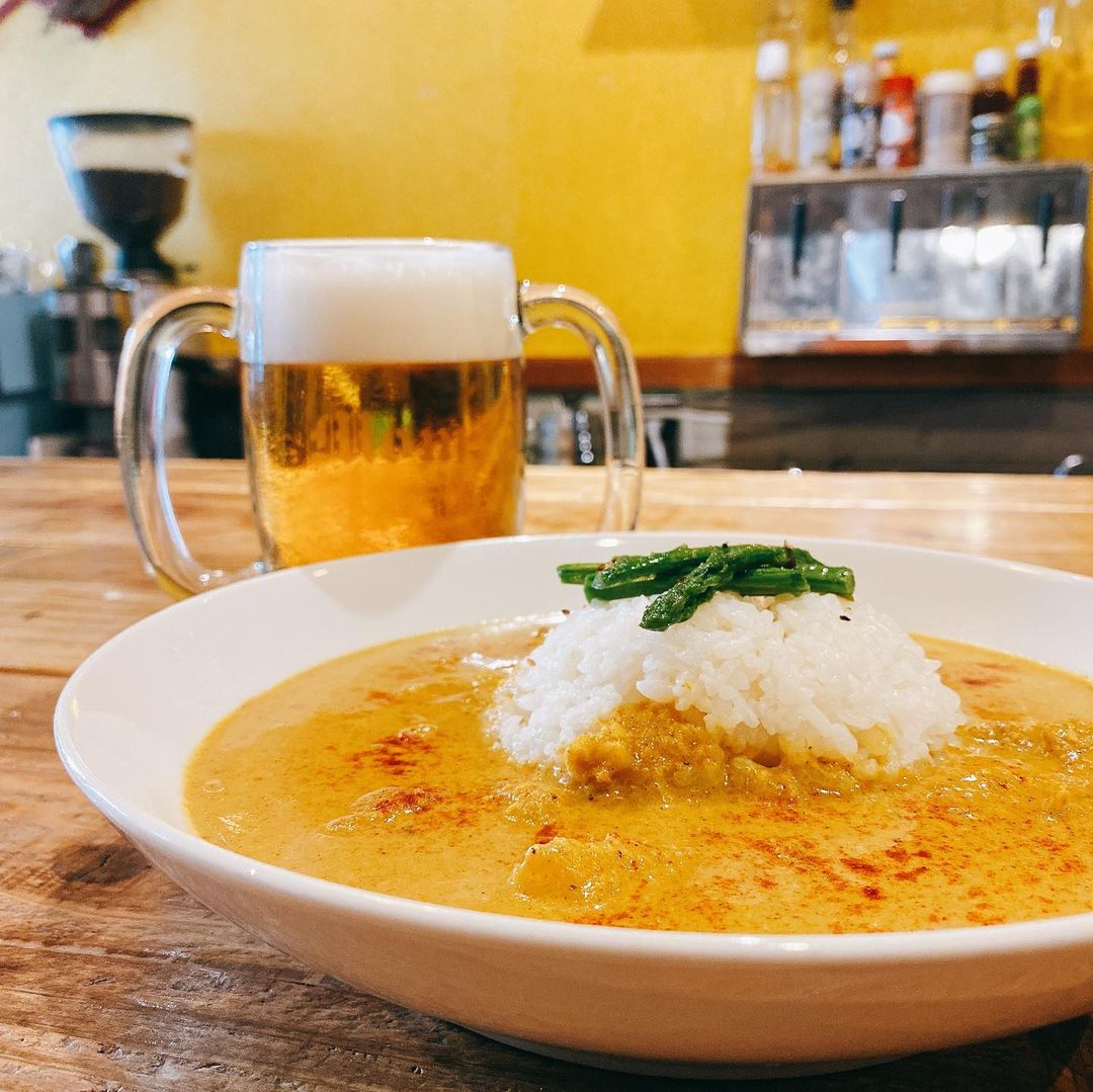 食事は普段ガパオやカレーを提供しているようで、基本はカフェですが、自然派ワインなど一部酒のラインナップもあります。1階はカウンターで5席程度しかありませんが、2階も使ってイベントを行ってもいるようです。