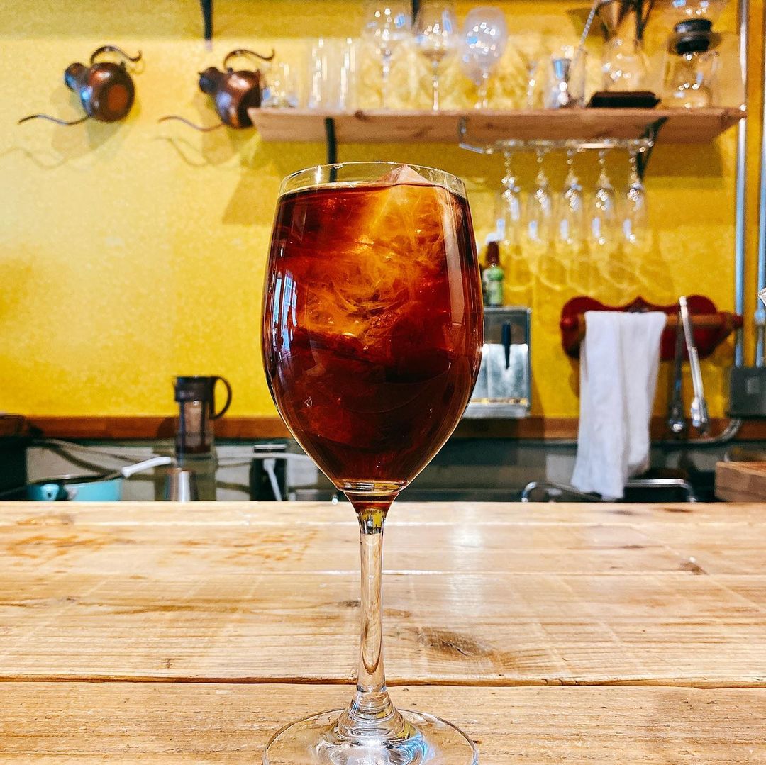 黒糖シロップ漬けのレモンが飾られたグラス入りのチーズケーキです。チーズクリームは写真ではプルプルに見えますがかなりがっしりしていて酸味も甘みもしっかり、食べ応えがあります。下の層はクランブルクッキーです。浅煎りらしいこちらも酸味のある水出しアイスコーヒーと一緒にいただきました。