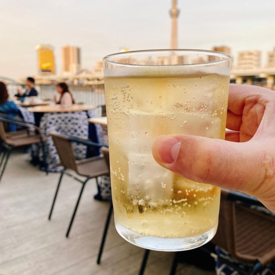 別の日ですが、台東区の案内人青木さん https://www.instagram.com/urokodaki.shigehiro さんと川床に飲みに来た時の写真も載せておきます。こちらは隅田川ハイボールと下町レモンサワーです。