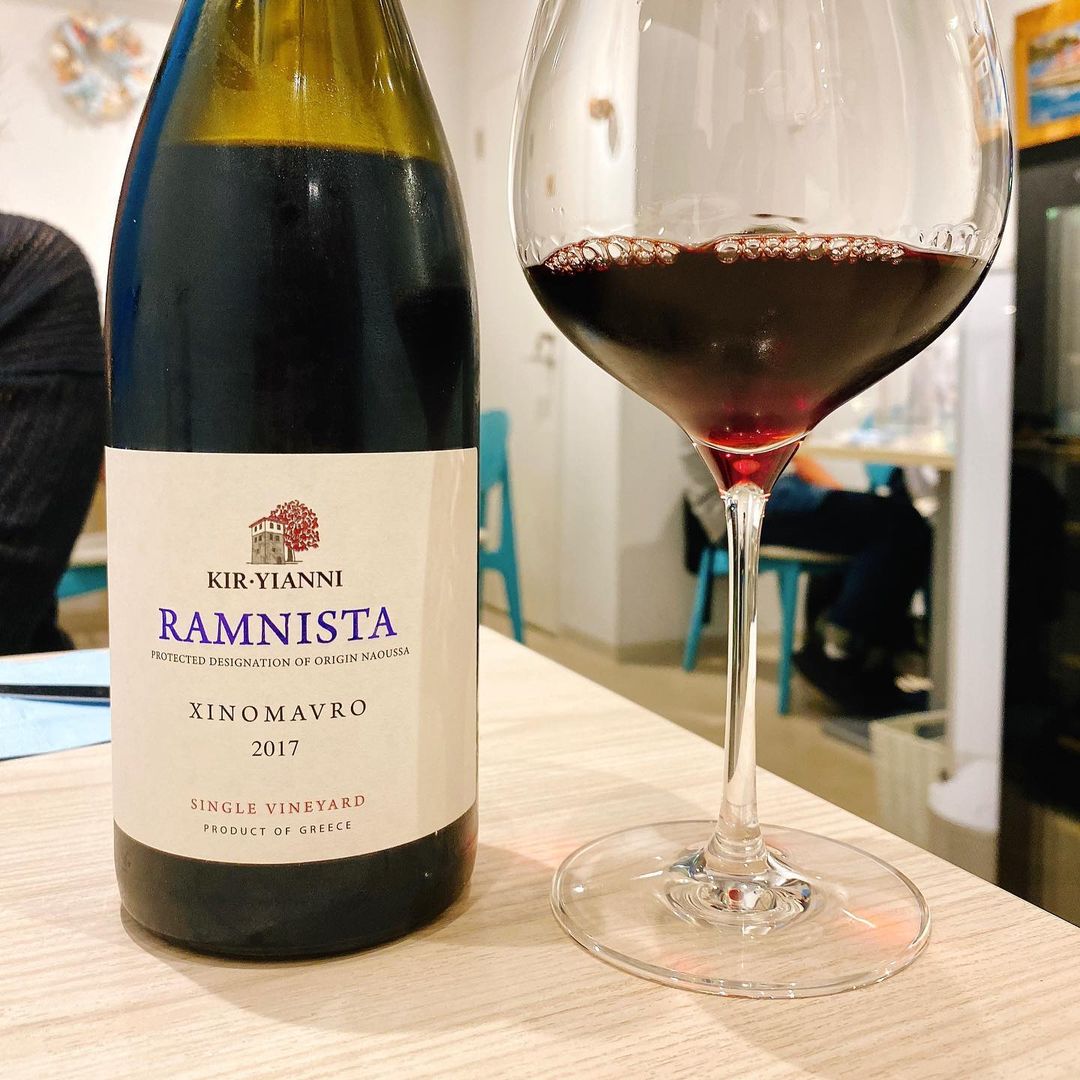 酒は赤ワイン、ラミニスタ クシノマヴロ。その他ビールもいただきました。食後にはギリシャヨーグルトも、ハチミツやクルミを乗せて。