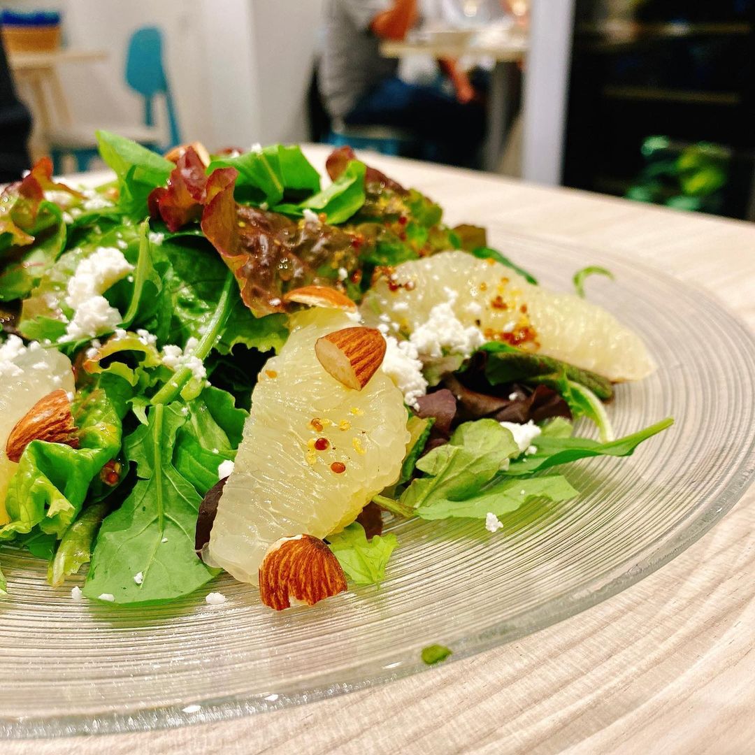 先日もストーリーで紹介しましたが、このお店ではオリーブオイルなどをギリシャから直輸入しています。テーブルに置いてあったグレープフルーツ風味のオリーブオイルは、少量のグレープフルーツの果汁や皮も入れているそうなのですが、とても強くグレープフルーツが香ります。店頭でも購入できますよ。
