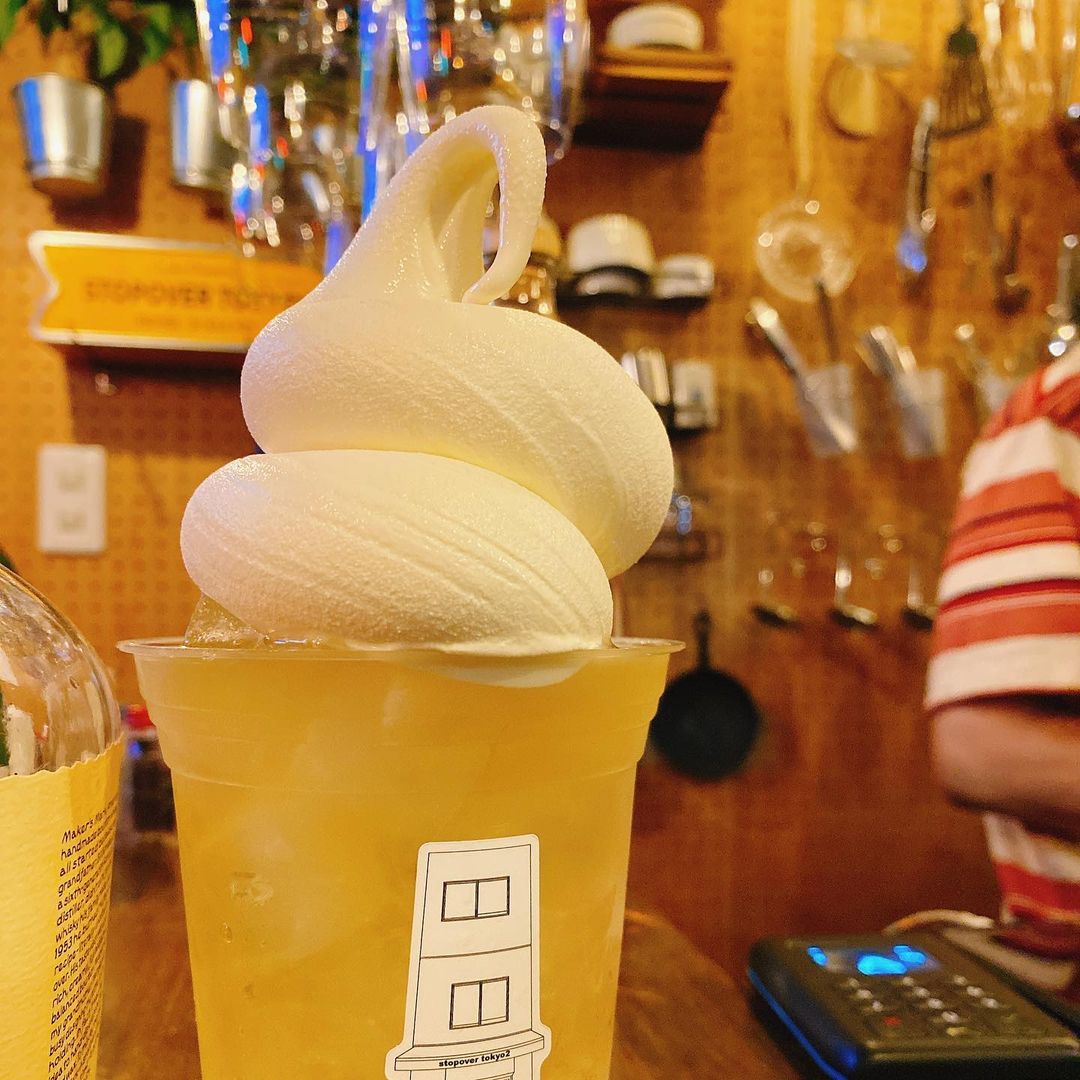 Gurutaiの投稿を以前から見ている人は記憶にあるかもしれませんが、もともと2年ほど前に、テキーラのソーダ割りにこのお店の本店である馬喰町のStopover Tokyoでソフトクリームを乗せてもらったことがあり、その後もたびたび別の酒にソフトクリームを乗せてもらったりもしています。