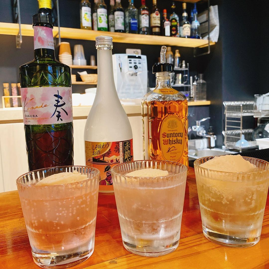 今回はこのお店が提供している様々なアイスにどんな酒が合うのだろうといくつかの組み合わせを試しに、友人を連れて来てみました。1人ではたくさんの酒を飲みきれないので協力者と一緒にみんなで色んな酒フロートを試します。紫蘇焼酎、桜のリキュール、ウイスキー、ジン、などなど、意外に美味しい、予想通り美味しい組み合わせがたくさんですが、この中からどの組み合わせがメニュー化するのか…?