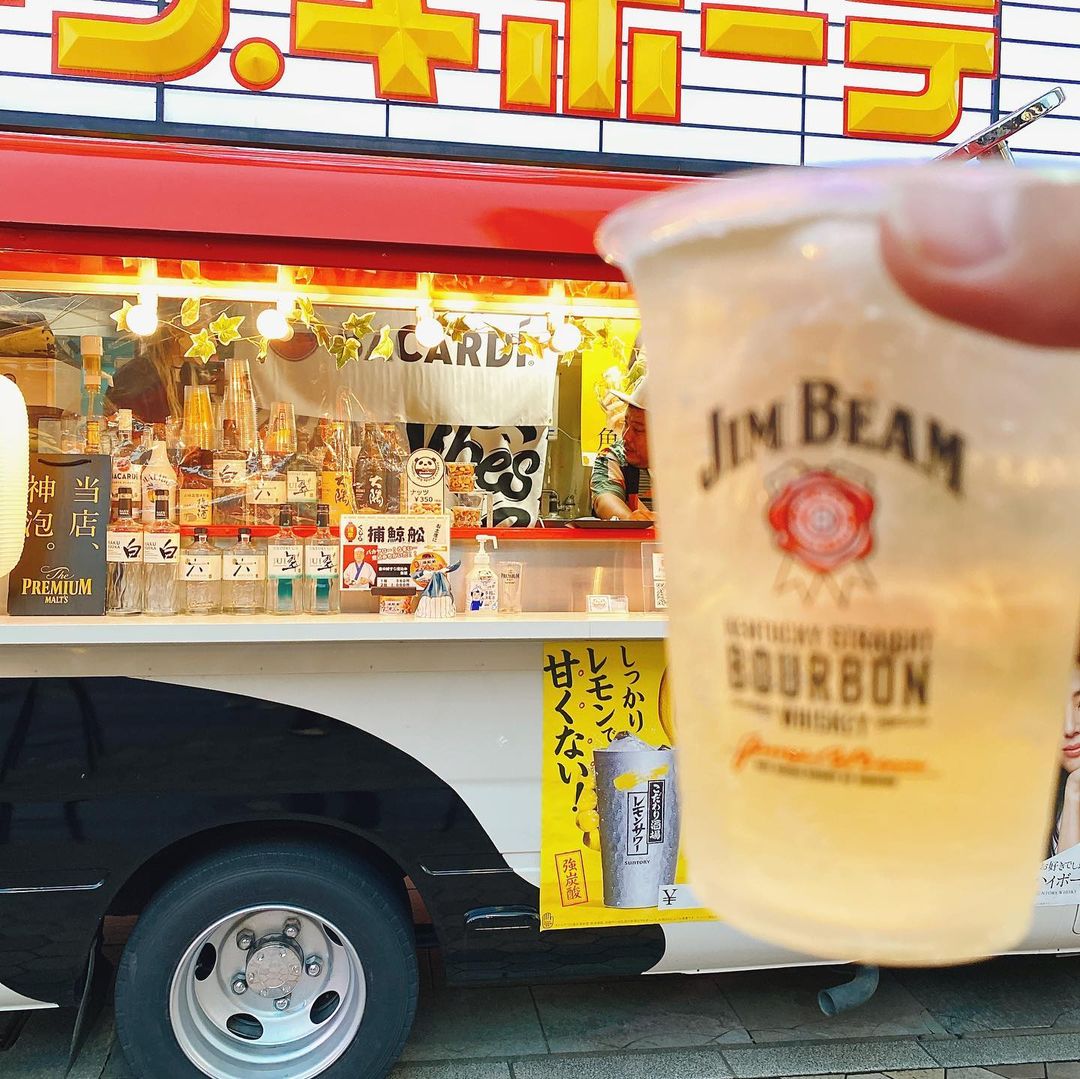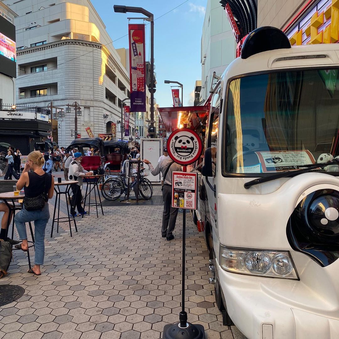 このPanda Barを提供しているパンダバスは、浅草のドンキホーテやまるごとにっぽんのビルが並ぶ六区ブロードウェイに土日のみ停まっている基本的にドリンクメニューのみを提供しているキッチンカーのようなものです。扱っている酒の種類も野外のものとしては比較的多く、この辺りには普段から他のキッチンカーもよく停まっていますが、土日はそれらを併用できます。だんだん涼しくもなってきましたし、夜は特に使いやすいですね。