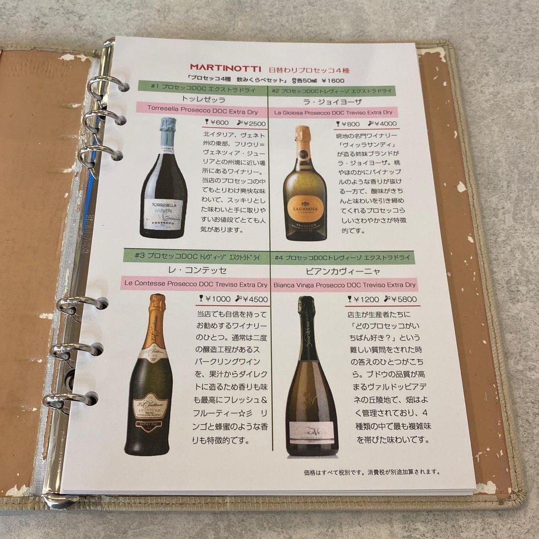 50ml×4で1600円!個人的にスパークリングワインをよく飲むんですが、普通スパークリングワインって開けちゃうと質が保てないのでグラスで出せる種類は少なくなっちゃうんですよね。ここならプロセッコの専門店なので、色んな銘柄が気軽に楽しめます。