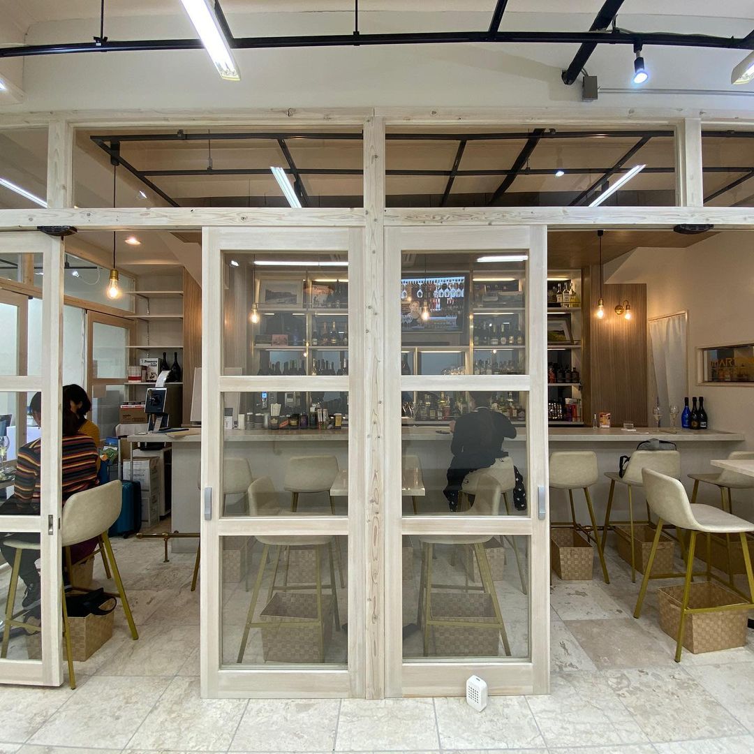 このお店は馬喰横山エリアにあり、周りは洋服の問屋に囲まれています。もちろんそういうところで働く人向けのお店もそこそこありますが、基本的に夜の人通りはまばら、お店も閉まってます。その中にあって夜中に白く光る外観は、酒飲みを誘蛾灯のように引きつけてくれます。お酒がライトアップされているような棚も素敵。