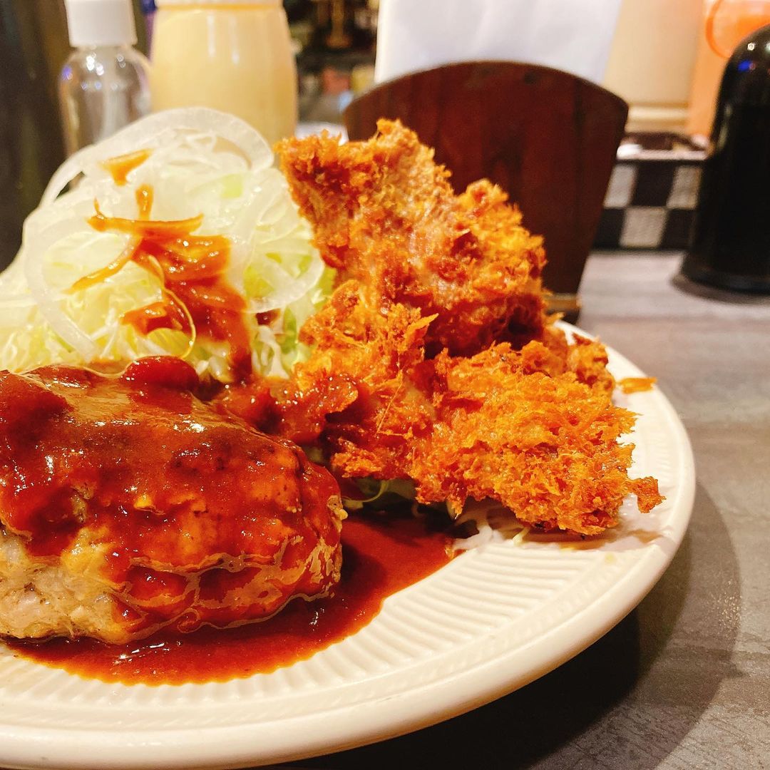 このお店の定食は2品のおかずの組み合わせにご飯とお吸い物をつけて950円。量がとても多くてお得感あります。今回はチキンカツとハンバーグを選択。とんかつとカレーでカツカレーとか、色々自由にできます。