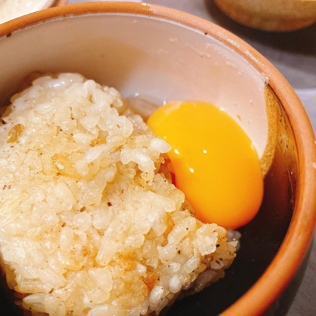 そして今日そもそもの目当てだったトリュフとフォアグラの炊き込みご飯のおにぎり。玉子の黄身をかけていただきます!これは期間限定のメニューみたいです。