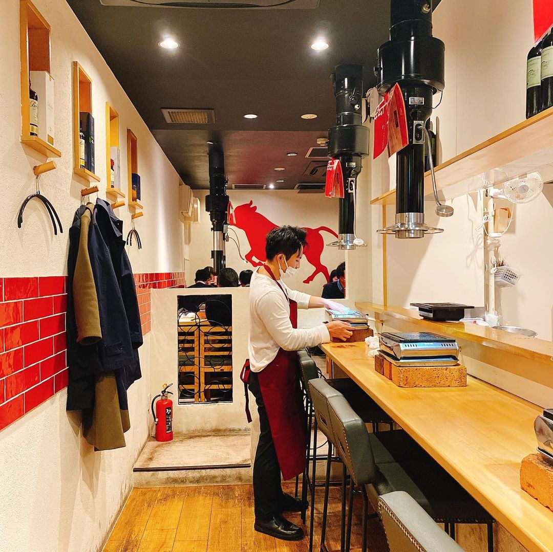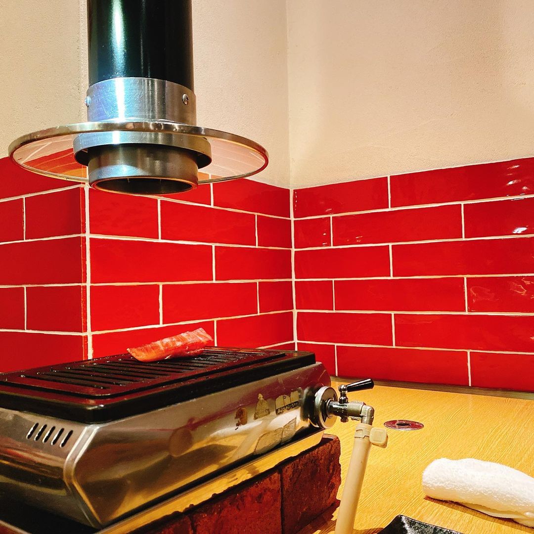 赤と白を基調としたキレイめの内装。カウンターは1人用のコンロがあるので1人焼き肉にも向いています。何度か1人でも利用しました。女性が1人でも入りやすいお店なんじゃないかなと思います。