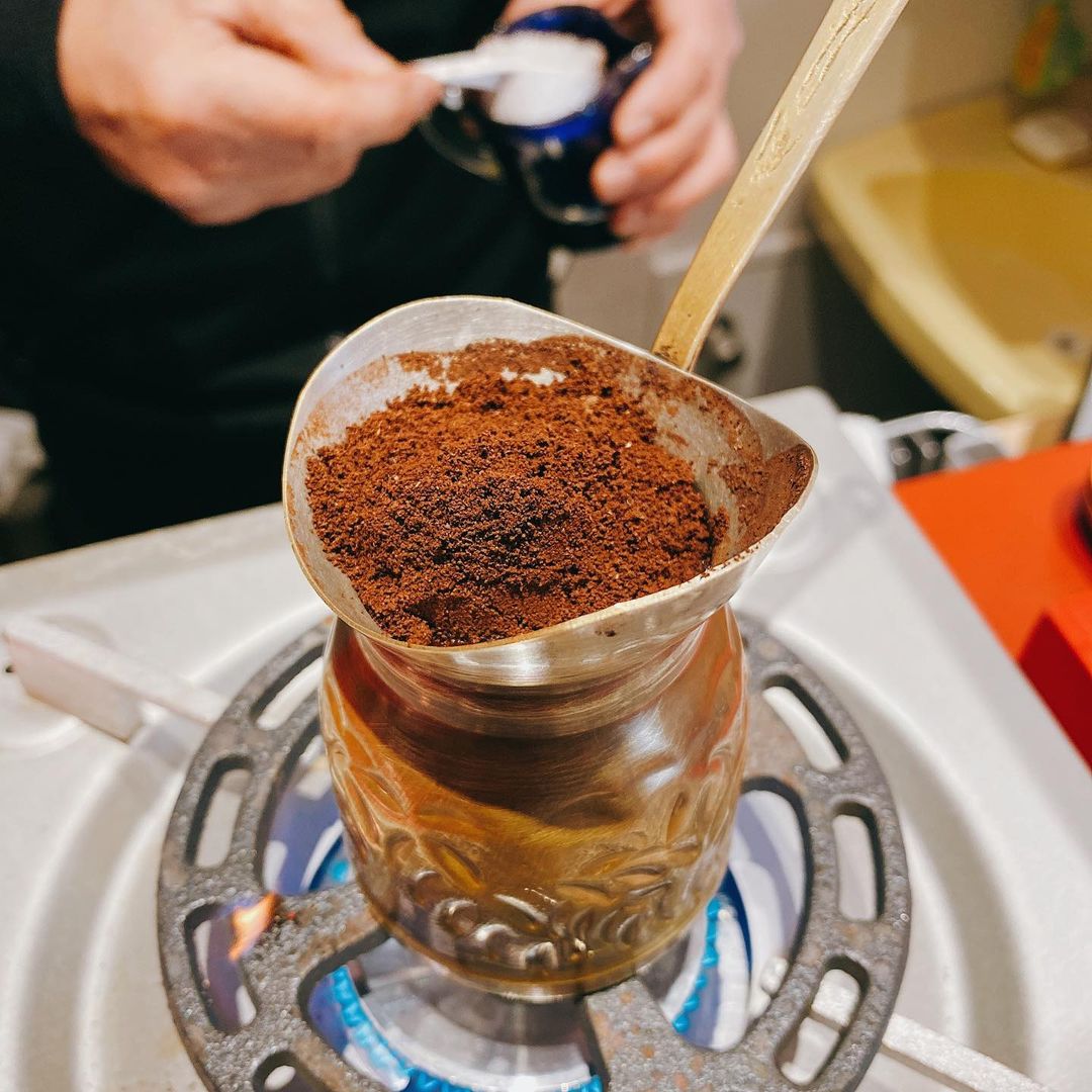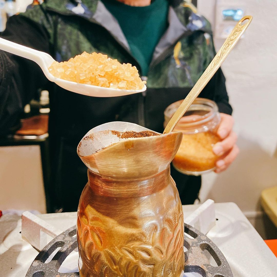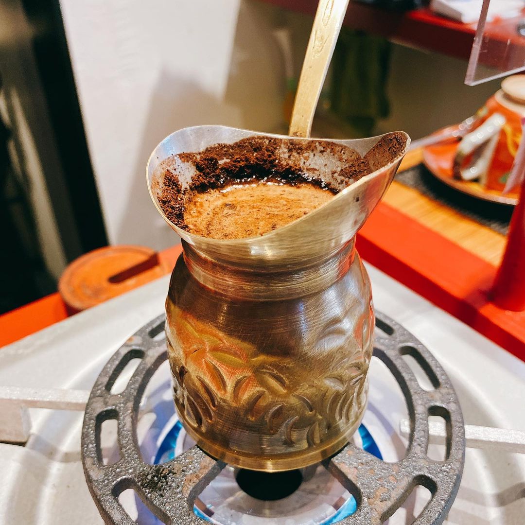 トルコのコーヒーの淹れ方を本格的にやっているとのことで、作っている工程の写真を撮らせていただきました!ちなみ1枚目が出来上がり寸前です。