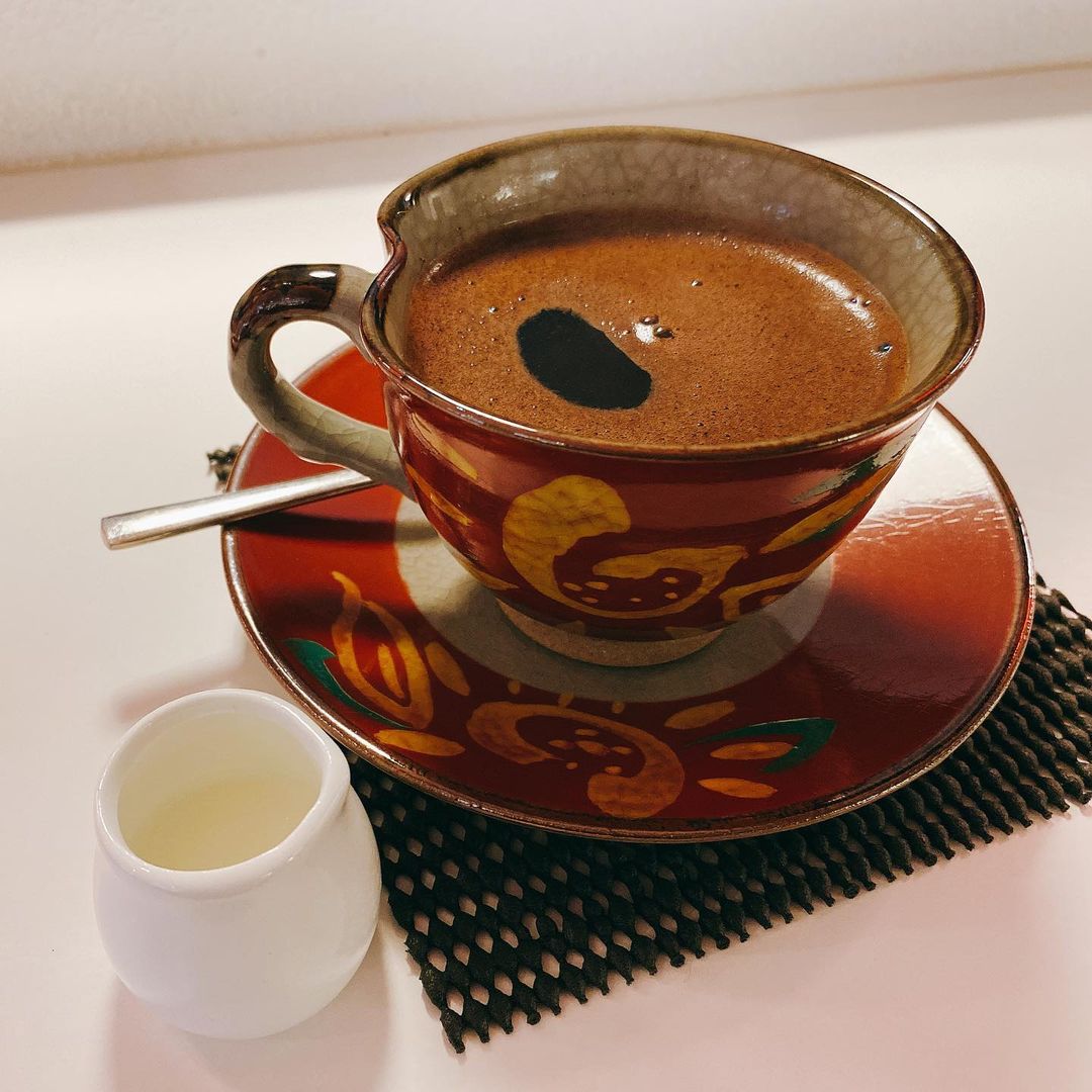 挽いた粉をジャズベに直接入れ、ゴボゴボと煮立たせて火から下ろす。これを2回繰り返して出来上がりです。当然粉をたくさん含むので、少し置いておいて粉が下りるのを待って上澄みをゆったり飲むのが良さ、だそうです。砂時計を待つような楽しみがありますね。