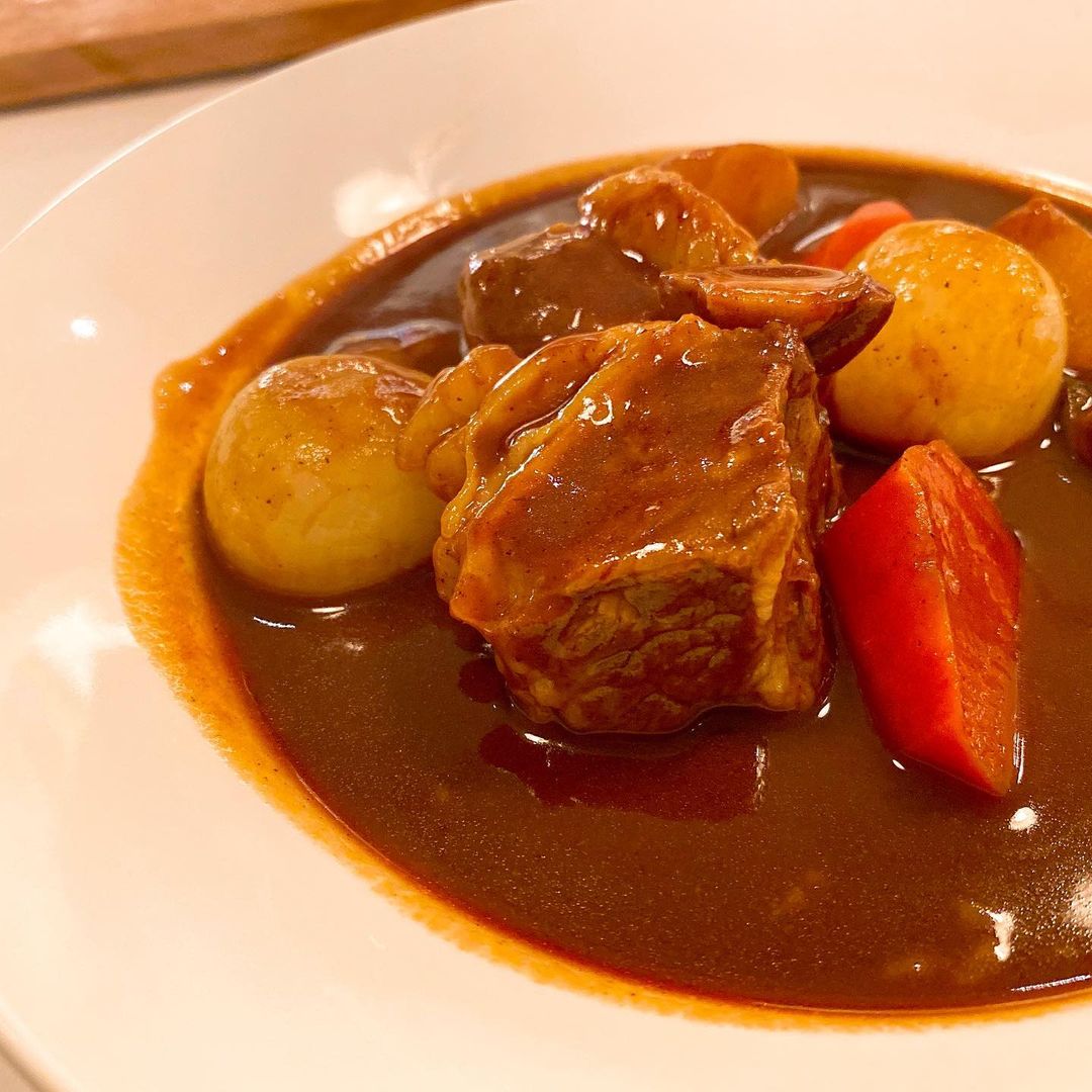 ブリード・モー。塊のチーズの中にトリュフを混ぜたチーズの層をサンドしたもの。なかなか香りは濃厚で、赤ワインに合わせたりパンに乗せて食べます。持ち帰りももらってしまった。あとはビーフシチューも。