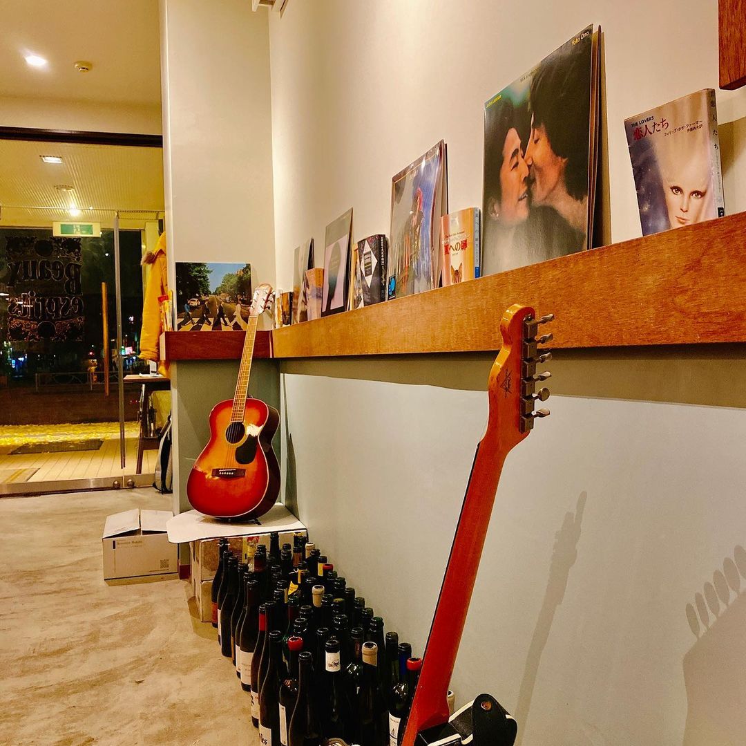 マスターはとても音楽好きで、店内には楽器や音楽機材、CD、レコード、書籍が所狭しと並んでいます。いつも音量大きめで、ジャンルを問わずレコードかCDがかかっています。