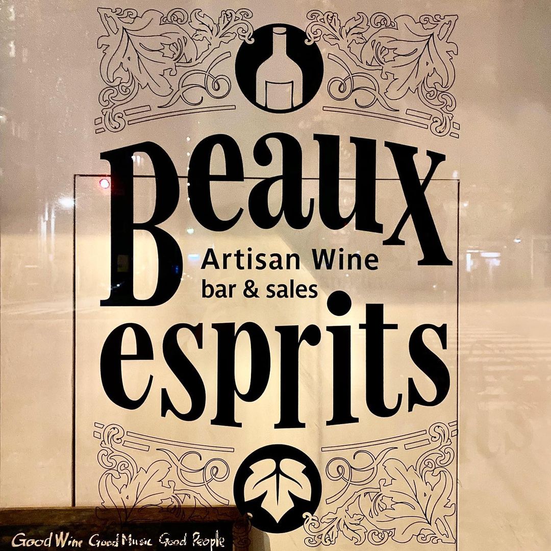 Beaux Espritsは洒落者の意。このお店が最初に気になったのはこのロゴ。とってもカッコいい。いかにも美味しいワインが飲めそうだと思いませんか。この雰囲気に惹かれてふらっと入ったのが今年の夏かな。でもまだつい先日1周年を迎えたばかりだそうです。