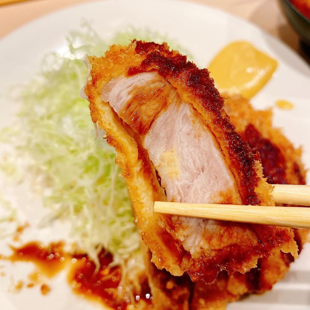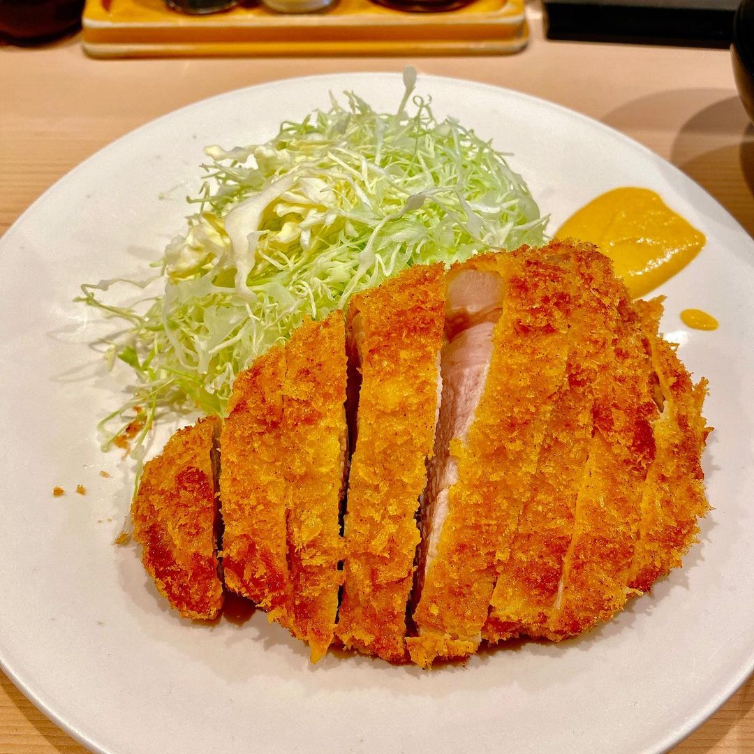 肉は分厚く脂身もしっかりでボリュームがあるものの、衣はサクッと薄く、脂っこいとんかつが食べられない人も食べやすい。衣にも若干の塩気。