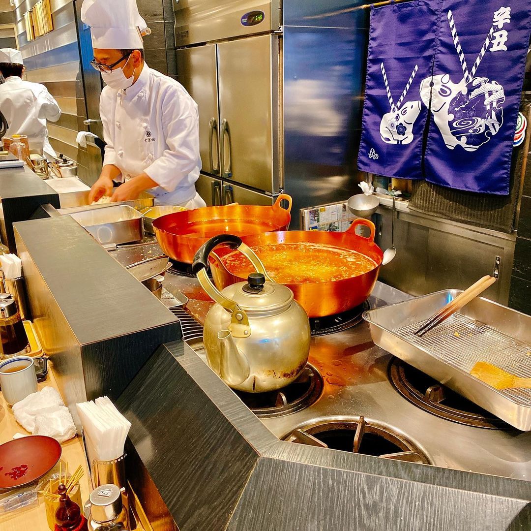 いつも忙しそうなので何度も行っている割にシェフとはまだ挨拶程度しか話したことがなく、作り方の話などは聞けてないんですが、最初に見て特徴的だなーと思ったのは写真7枚め、この2つの銅の揚げ鍋ですね。聞くにはまず中温→低温→中温と3度揚げるように使っているそう。