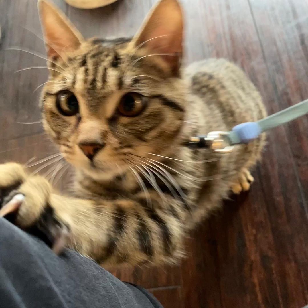 蔵前のカフェ、81蔵前カフェの看板猫、ハッピー。人懐こいけどやんちゃな性格だそうで、たしかに近寄ると寄ってきてくれたり膝に乗ったりしてくれるんですが、触ろうとすると猫パンチしてきたり軽く歯を立てちゃったりすることもあります。猫に慣れている人なら大丈夫だと思うので、知った上で遊んでもらいましょう。