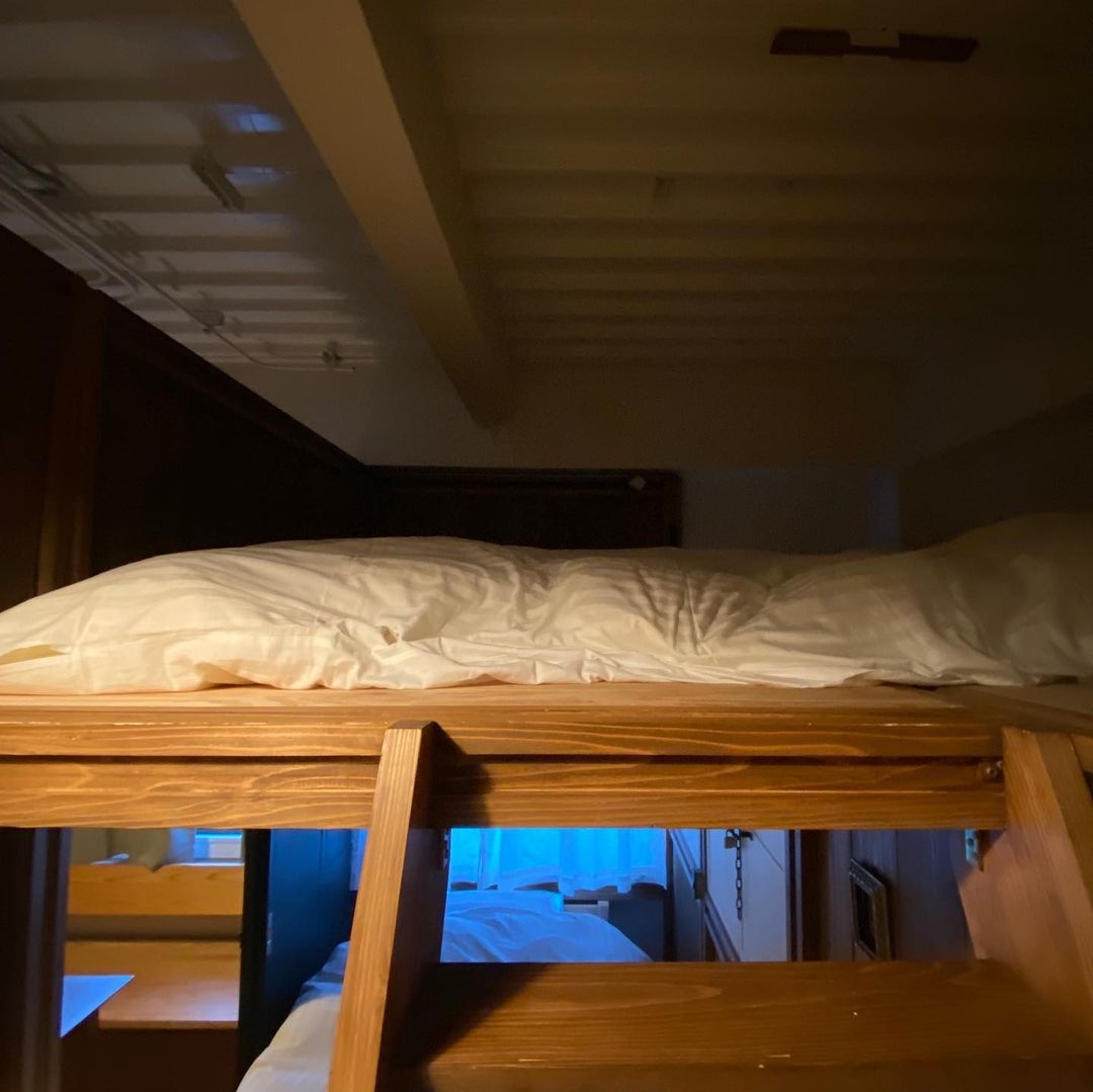 3人部屋で、1つの部屋にデスク、ベッド、ロフトにベッド2つ。部屋には適度に調度品も置いてあるけど、シンプルでミニマル。