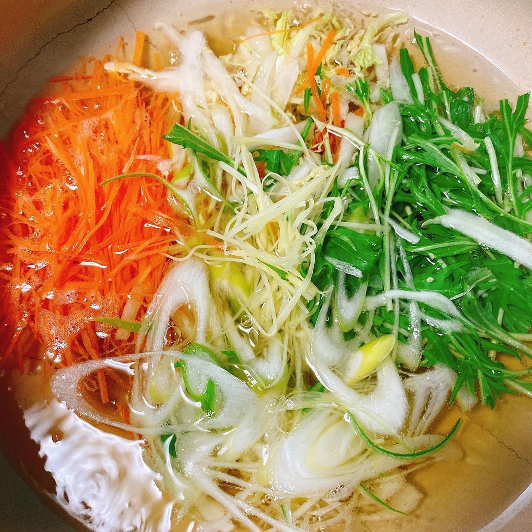 白身魚の切り身と、水菜、にんじん、ネギなどの野菜、だし汁と薬味がつきます。2500円です。ここまで揃ってればさっと鍋ができますね。