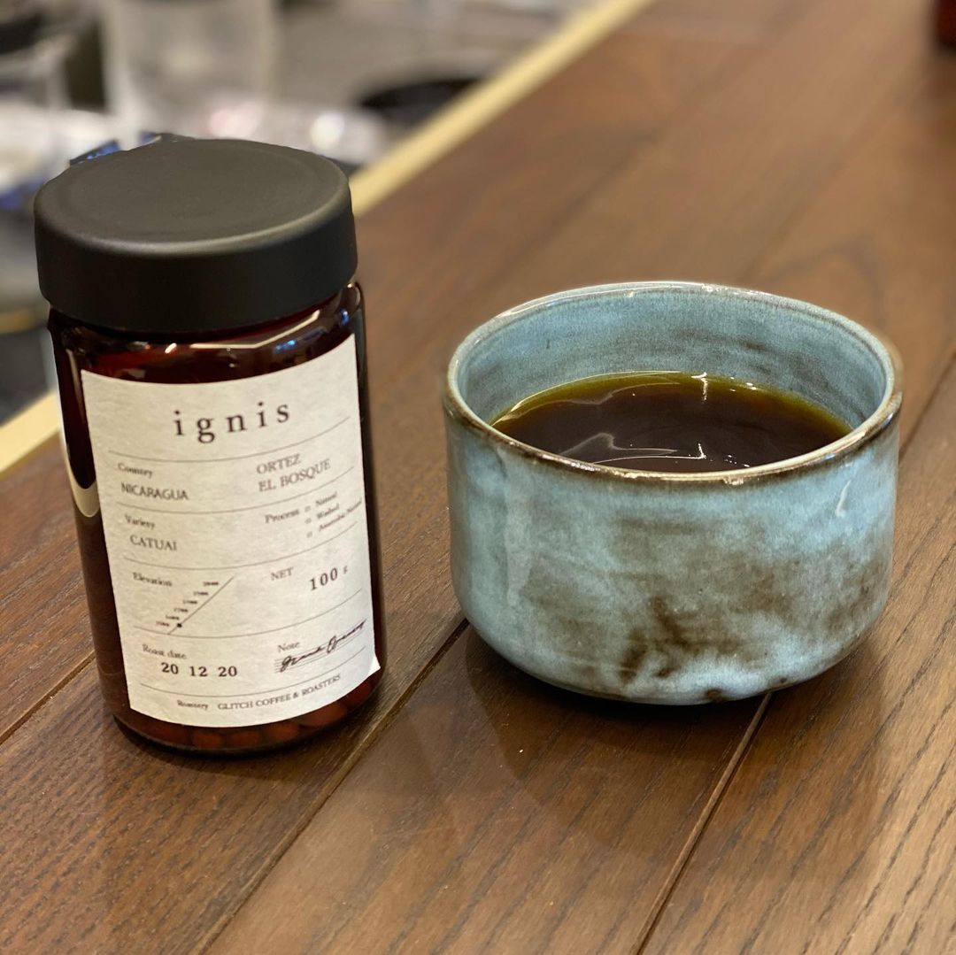 コーヒーを作るときに使っている抽出機の性質として、コーヒーの口当たりが滑らかになるのも特徴とのこと。確かに少しとろっとした感じがあります。