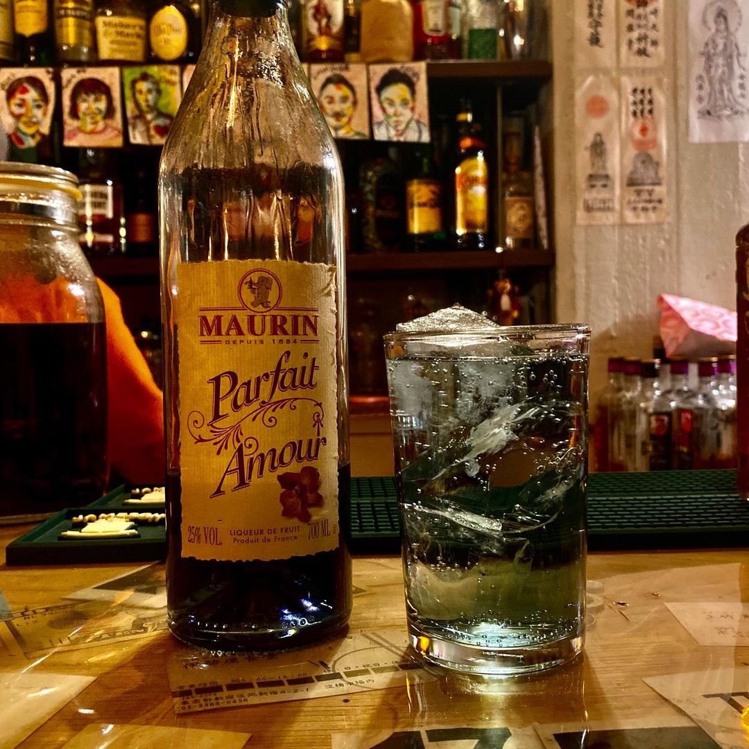 前回もおでん出汁でやった出汁割りですが、たこ焼きの出汁割りもやってみました。日本酒は澤乃泉。辛口の日本酒が出汁割りには合うんですね。その他色々飲みましたが、初めて飲んだスミレのリキュール、パルフェタムールのソーダ割り。スミレの香りのパンチが強いです。