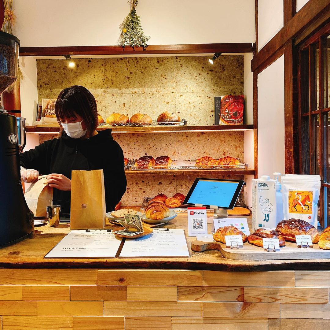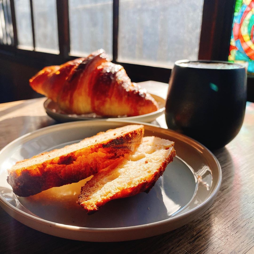 今日は日差しが暖かく、2階のカフェスペースはまさに古民家の居心地の良さが最大限に引き出されていました。古民家カフェってリノベーションのコンセプトとしか思っていなかったですが、今はこの、完全に落ち着けるおうちのような空間で美味しいパンとコーヒーがいただける環境をこそ言い表した言葉だなと感じています。
