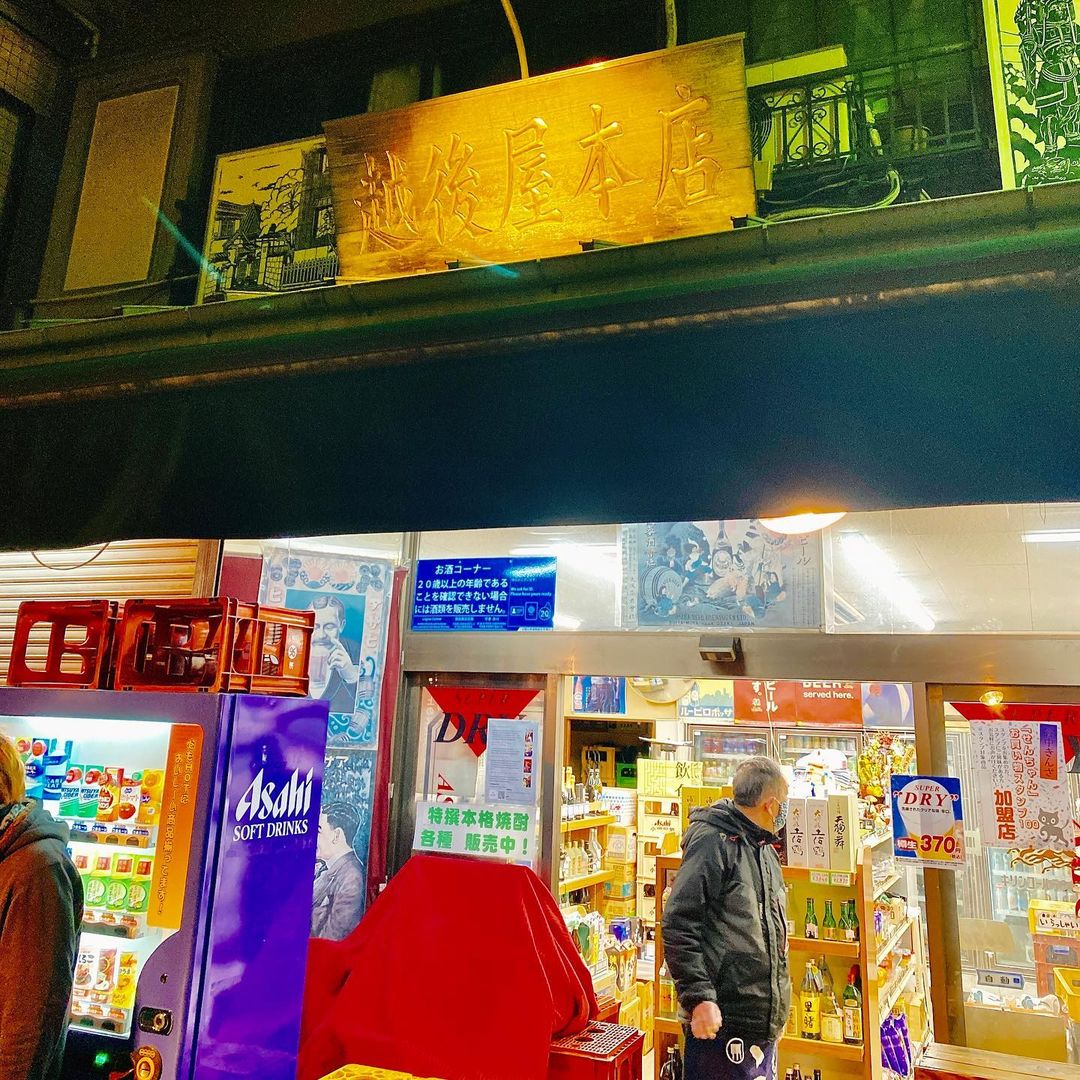 更に日暮里の酒屋、越後屋本店で琥珀エビス。持ち込みが可能な酒屋の角打ちです。角打ちというより、店先にビールケースが出ていて、それをテーブルがわりにして飲むようなスタイル。通りかかるたびにそこで飲んでいる人たちを見ながら羨ましく思ってたんですよね。やっと実現!しばらくぶりのGurutaiぶらりやなか銀座です。