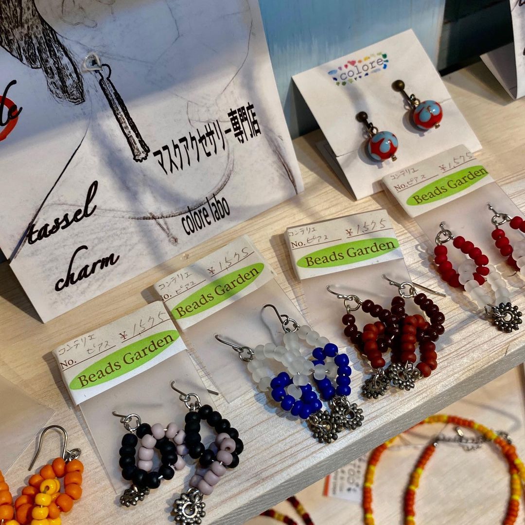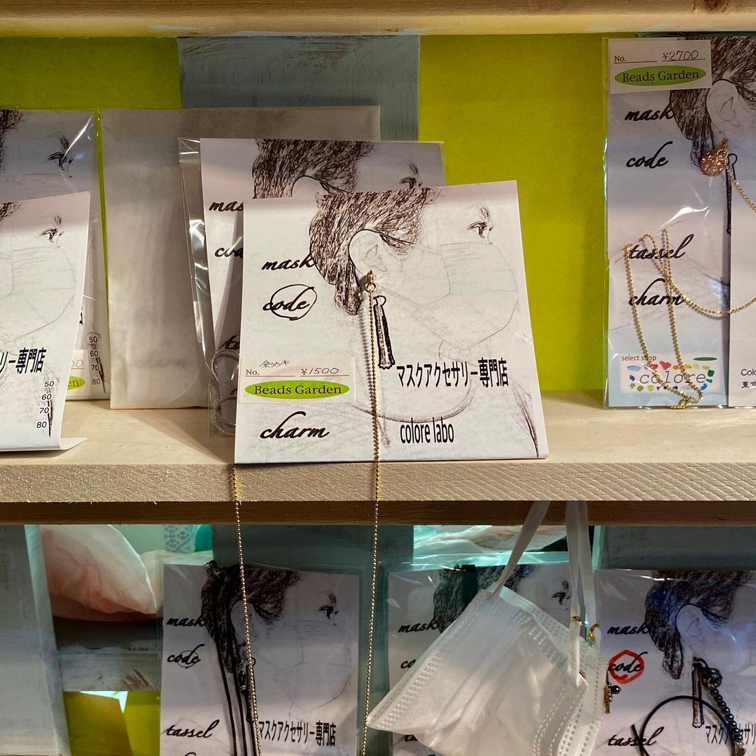 もともとは埼玉は浦和の方に1号店があり、そちらはビーズアクセサリーや輸入雑貨を販売しているそうです。谷中はほぼマスク関連の商品専門のようです。