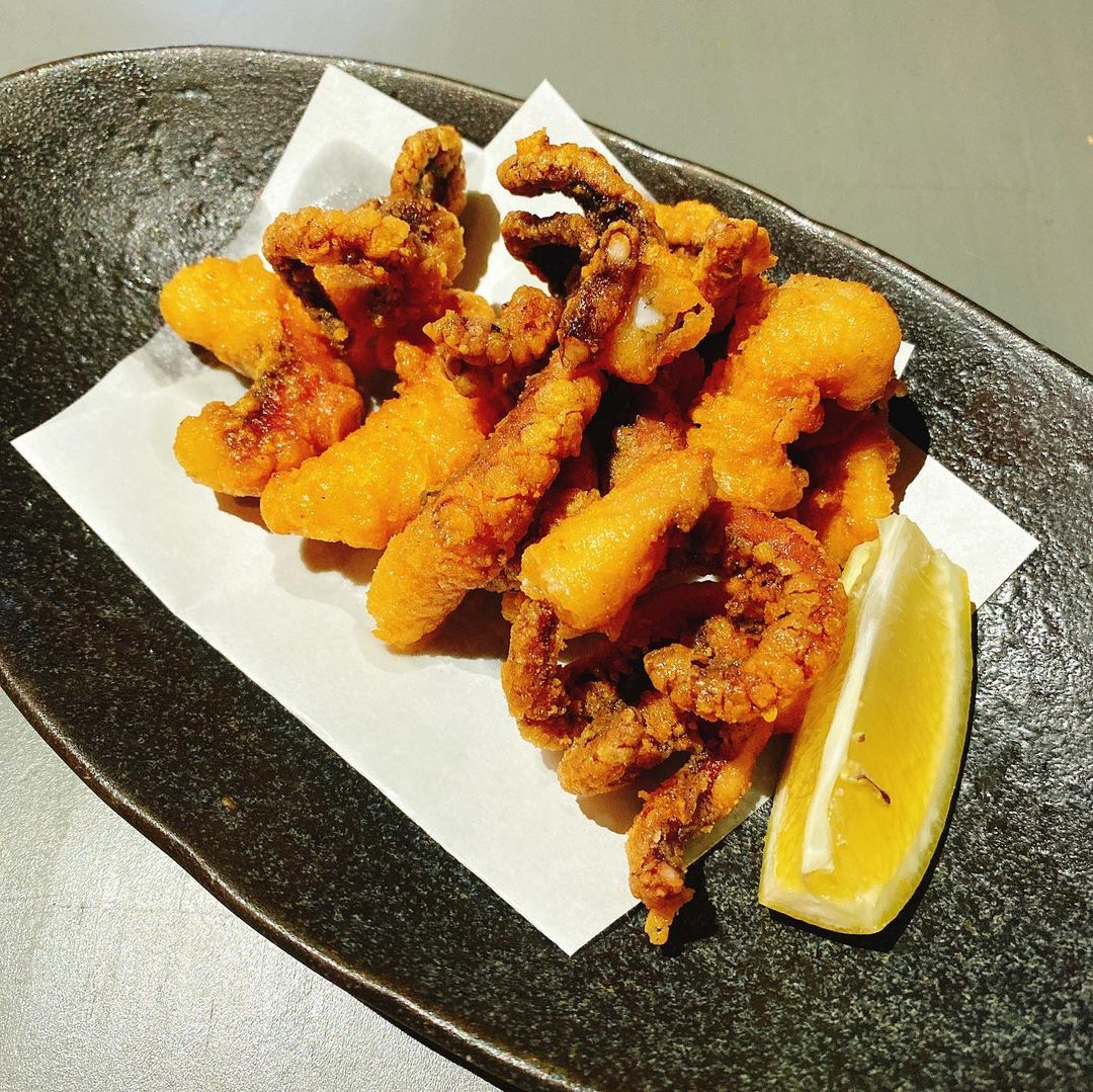 鶏チャーシュー丼もあったのでそちらも注文。ラーメン屋でもあるような茶碗サイズの丼です。他には、海老のカレーマヨネーズソース、タコの唐揚げ。海老のカレーマヨネーズソースはトロッとしたソースに包まれていますが、衣はサクッとしていてとても良い食感。