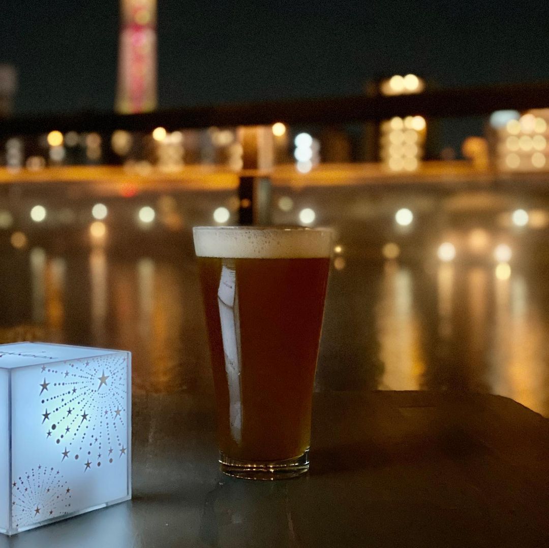 そして個人的にはボン花火といえばクラフトビールなので、いわて蔵ビール ジャパニーズスパイスエール 山椒。山椒のスパイス感はしっかり出てますが、辛みが苦手な人が飲めないほどではないです。この日は夜と言ってもそこまで寒くはなく、テラスビールを十分堪能できました。夜景もきれいでしょ。