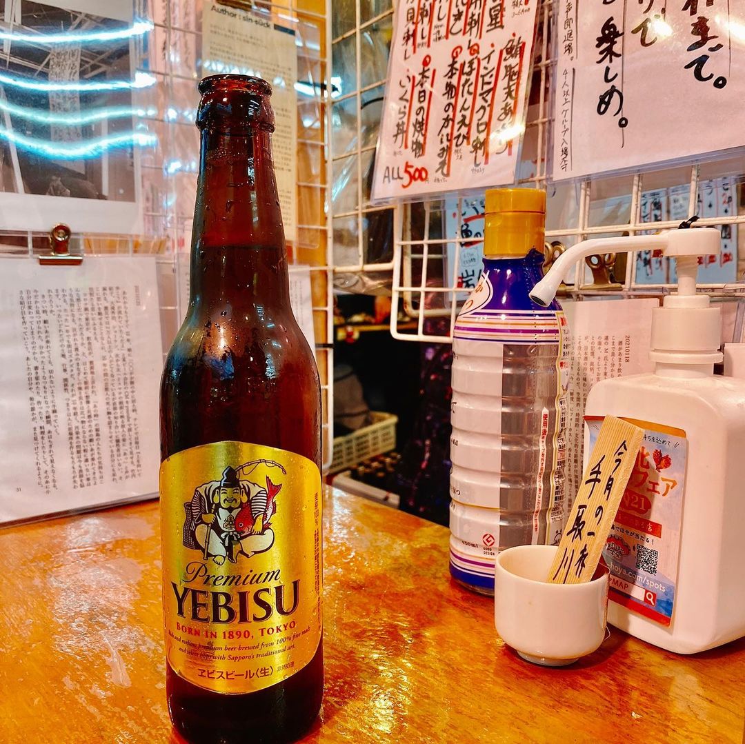 他に、マグロ脳天の炙り、前回も紹介したもうかの星、いくら丼、カニ盛りをいただきました。これらはオール500円です。お酒はエビス、そして日本酒、月山を頼みました。ポエムに紛れて、ちゃんとお酒の紹介もされてるんですよね。