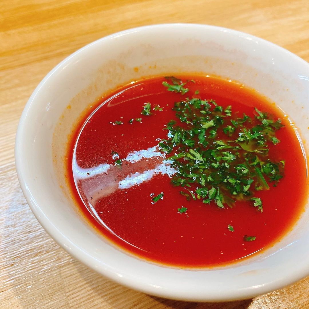 前日、姉妹店のらーめん改でやっていた限定メニュー、蔵前ブラックを食べようと思っていたのに売り切れてしまい、どうしようと考えていたところ、翌日のビリケンの告知を見て、気持ちを切り替えました。トマトスープも面白いけど順当にも見える組み合わせ。ビリケンと改の限定はいつも3杯食べたい。