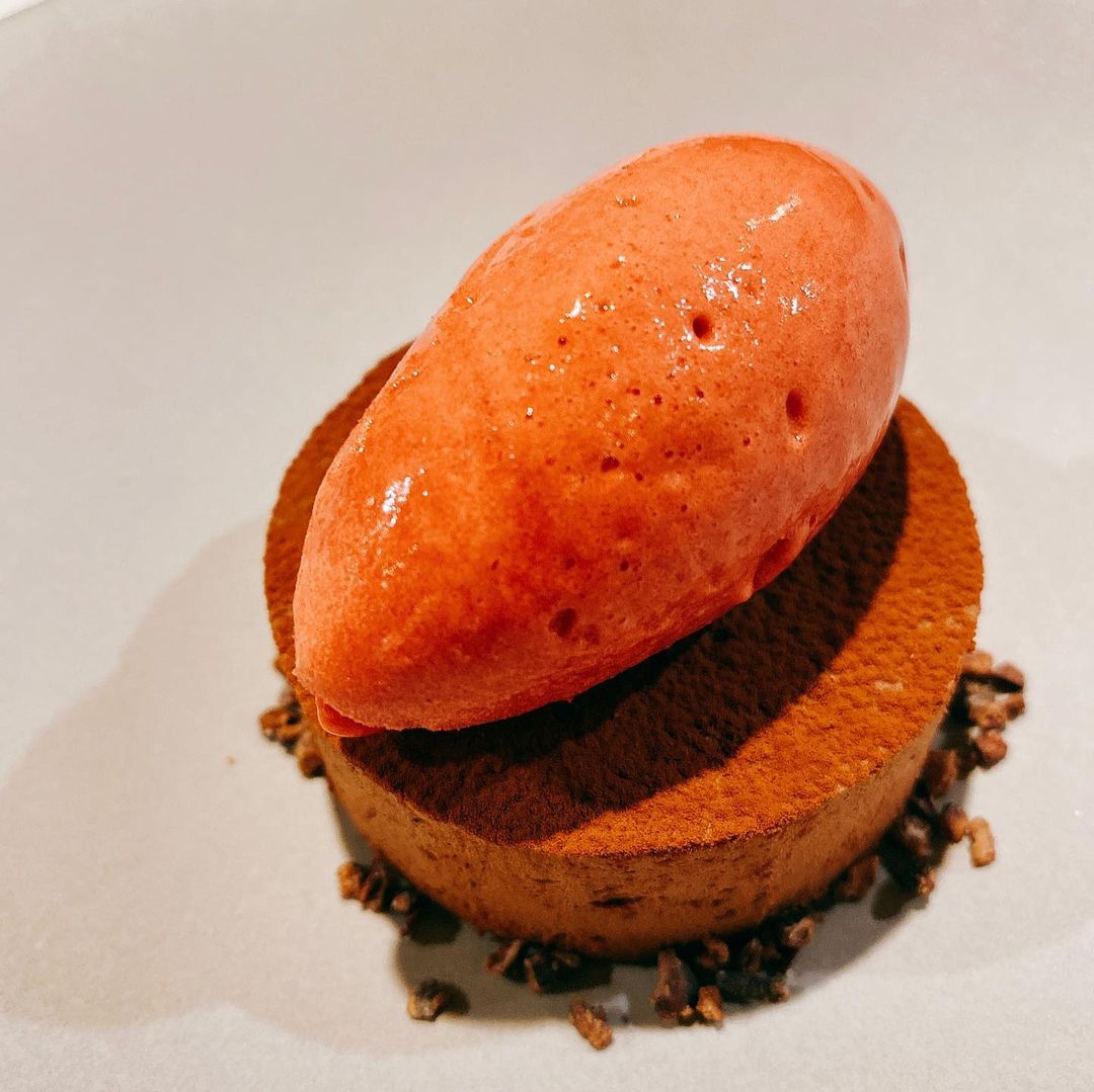 デザートはチョコレートのムース。ストロベリーのアイスもついてきて、最後までボリュームたっぷりでした。