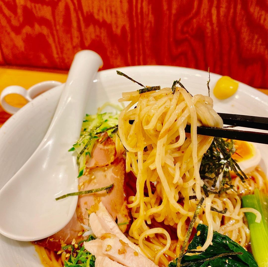 具のバリエーションの豊富さが面白い。焼き豚、鶏肉のささみ、ノリ、大葉、シラス、きゅうり、玉子、セミドライトマトなどなど…。特に良かったのはノリとシラスの下にあるグリルしたセミドライトマト(だと思います)。水が出ないので冷やし中華の味の邪魔はせず、いいところだけを主張するトマト。これはすばらしい。