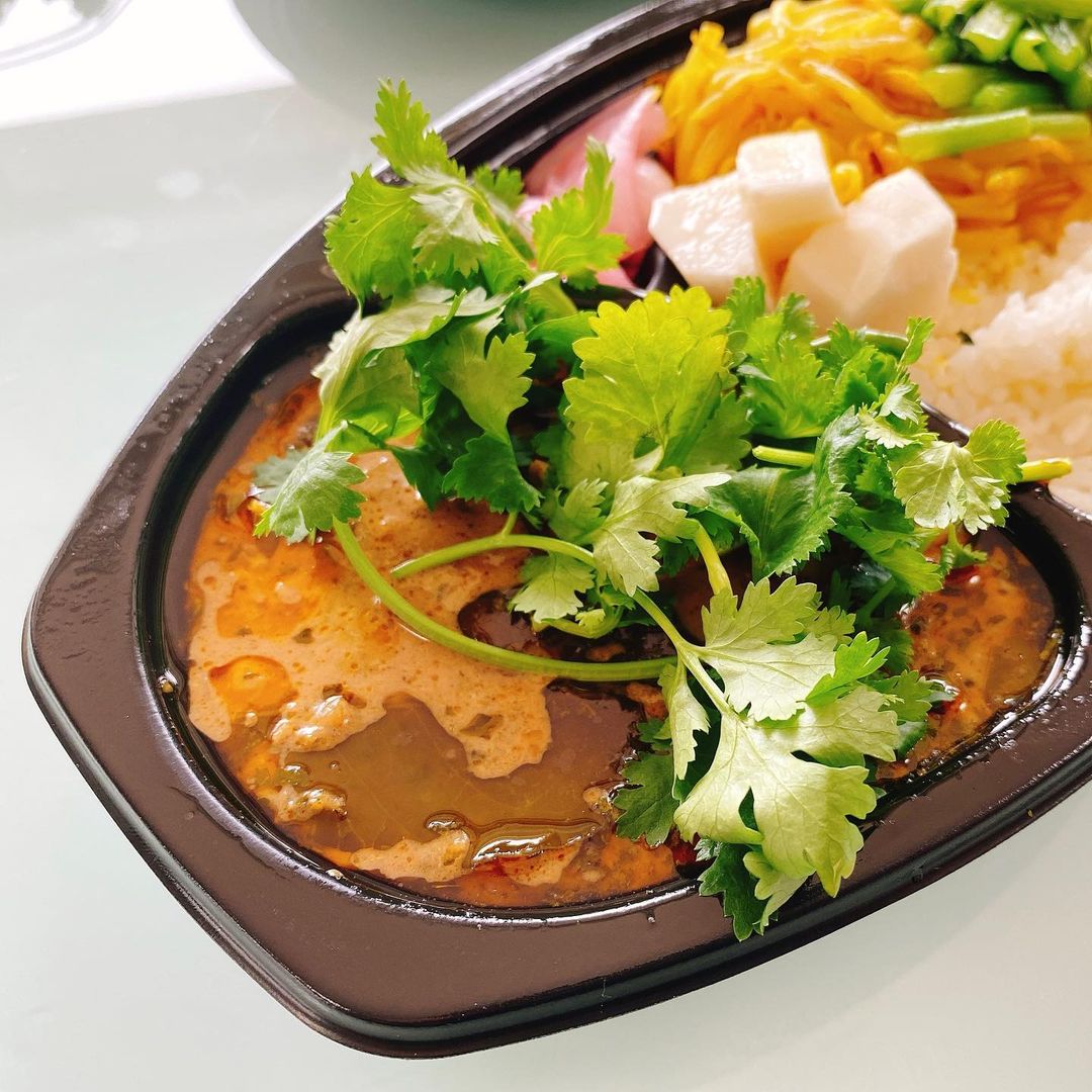 馬喰町のフレンチ、La Boucherie Goutonsのポークキーマカレー テイクアウト(トッピング パクチーと辛味ペースト)