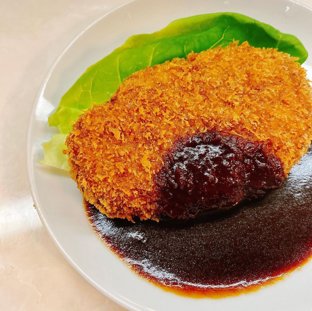 他に、メンチカツレツも食べました。メンチカツもドミグラスソースで食べるんですね。揚げハンバーグみたいな感じですね。同行者はビーフシチュー、サラダ、コーンスープを。
