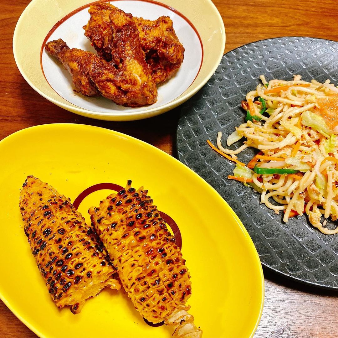 お店ではさらに日本酒を使ったサングリアのサケグリアサワーを。持ち帰りで明太子海鮮塩焼きそば、焼きとうもろこし、バッファローチキンをいただきました。向かった時間が遅かったためいくつかのメニューはすでに売り切れていました。近くのお店の人もけっこう飲みにきていたりして、この辺りのお店はお店を楽しそうにやっているなあ、と感じますね!