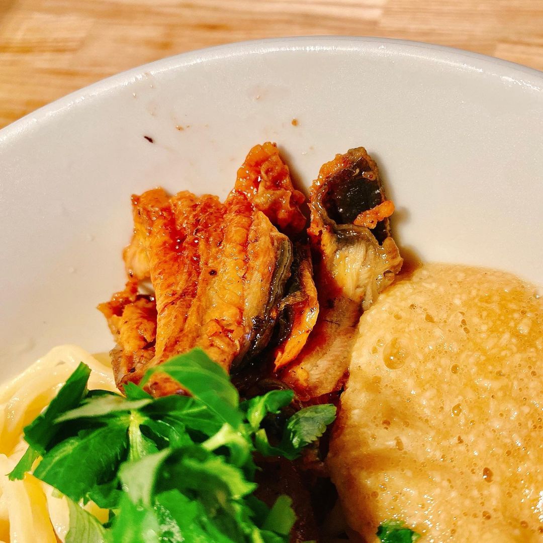 濃厚という言葉では表せていないほどの濃厚さ、鰻って飲み物だったんだ?と思いました。ポタージュのようなとろみと液体に占める固形物の割合。太めの麺にがっしり絡みます。具はもちろんチャーシューの代わりに鰻と、とろろかな?これはよりスープを絡ませるためのものなのかな。スープにかかった山椒もいいですね。
