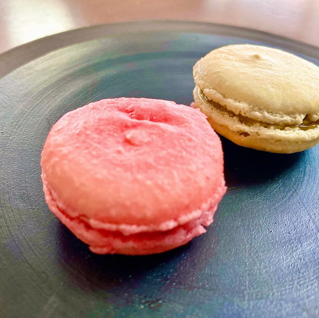 ゆっくり向かうとすぐに売り切れてしまうので、開店時に行くのがベター。今回はマカロンも食べたかったので念を入れて予約しました。ピスタチオとクランベリー、2種類の味。ピスタチオはアマレットのような香りも感じました。個人的にはマカロンの歯に詰まる感じが苦手なんですが、そういう食感もなかったですね。普通のマカロンとどう違うのだろう?