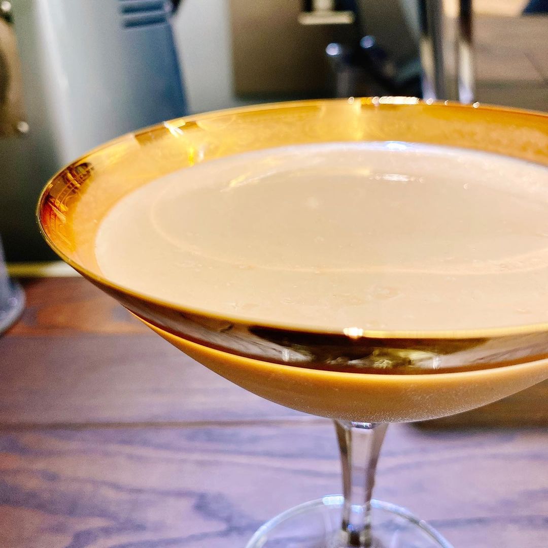 他にミルクブリューラテも注文しました。牛乳を使った水出しアイスコーヒーということですが、これもやはり香りがよく、ゆっくり味わいながら飲みました。こちらも金縁のグラス、よく合っていますよね。豆の香りか、ミルクチョコレートのように香り、そして甘みも軽くあります。