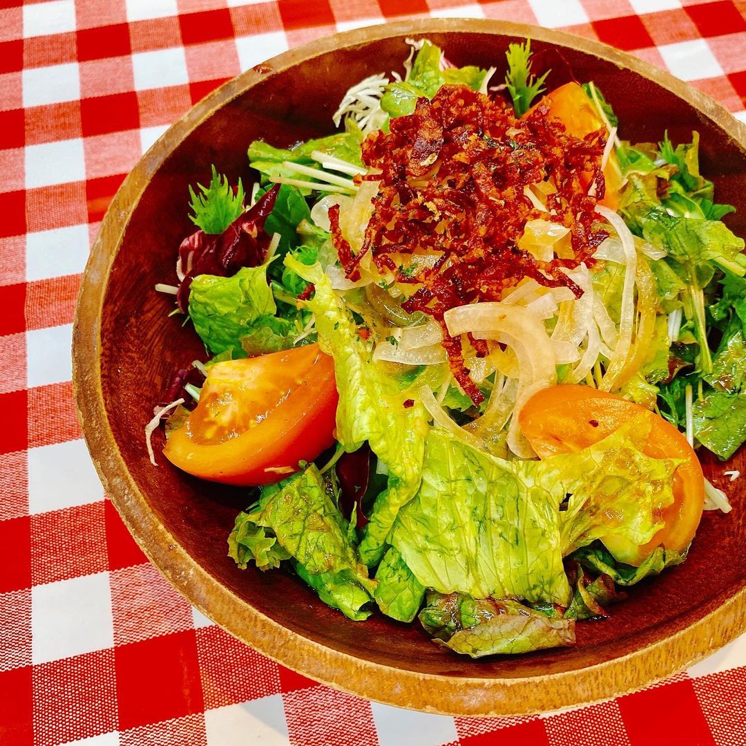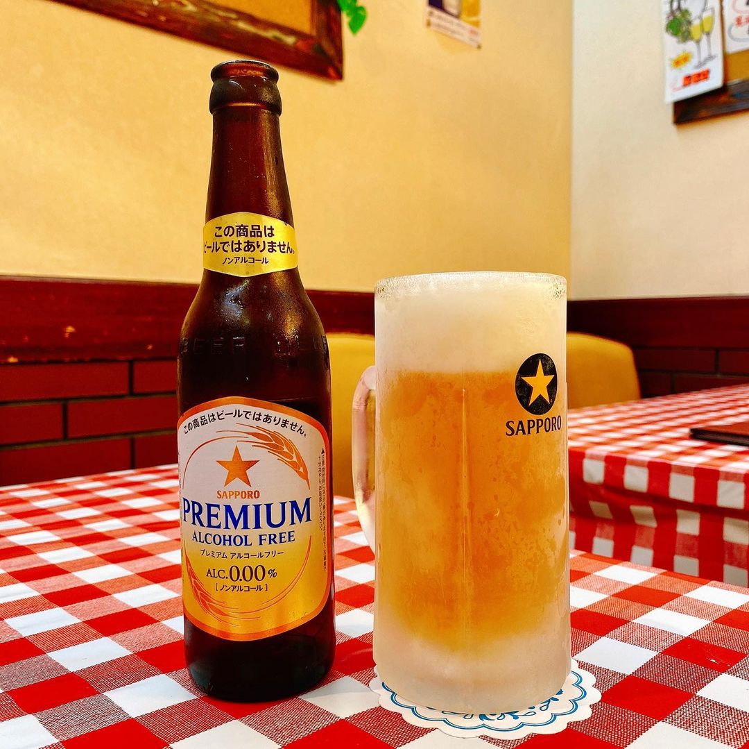その他、ホタテバターとサラダを食べました。飲み物はノンアルコールですが、通常のビールと同じようにキンキンに冷えたジョッキで提供してくれます。これ、結構ビールを飲んでいる気分が強まりますね。