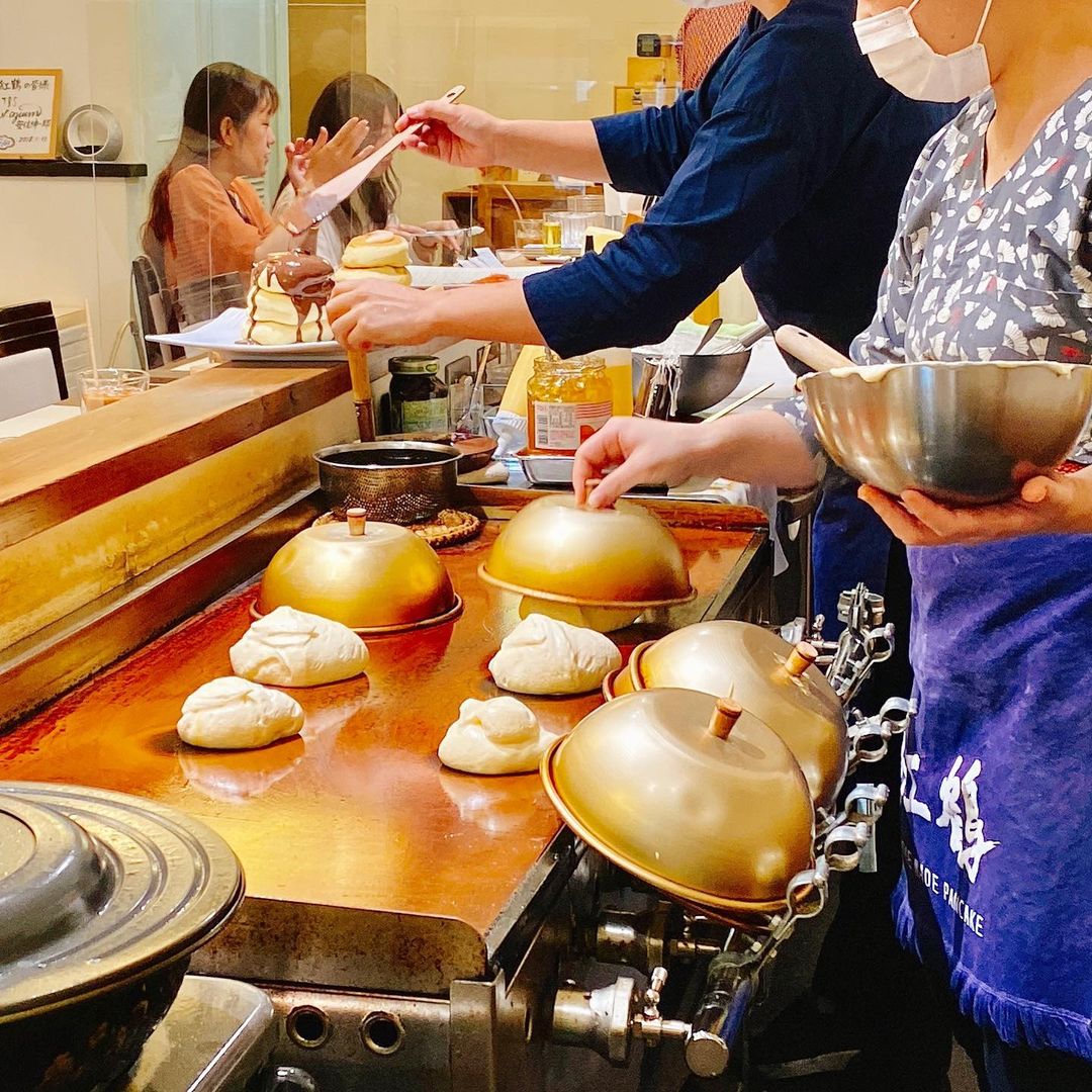 しばらくぶりに、この日は家族を連れて行きました。銅板で焼かれるパンケーキの制作工程を、母が興味深そうに見ていました。このお店はオープンしてからずっと大将1人でパンケーキを焼いていましたが、最近は焼き担当が増えたようで、少し安心。