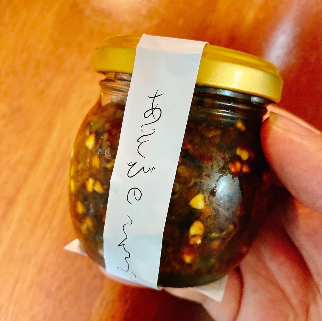 竹皮煮とこんふぃはさん葉かの定番テイクアウトメニューでもあり、通販サイトで販売もしています。こんふぃはヤマメ1匹と蕎麦の実を使って煮詰めたもので、味付けは醤油ベース。おつまみにもご飯のお供にも、パスタソースなどにも使えるそうです。たまたま、とうもろこしご飯ともうまく合いました。